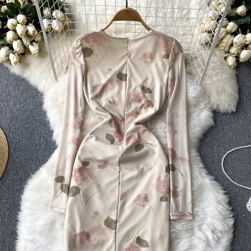 春秋セレブ セクシー Vネック ウエストスリット イブニングドレス スカート 女らしさ スリット バッグ ヒッププリントドレス スプリング 春物 オータム 秋物 lyxaj529845966