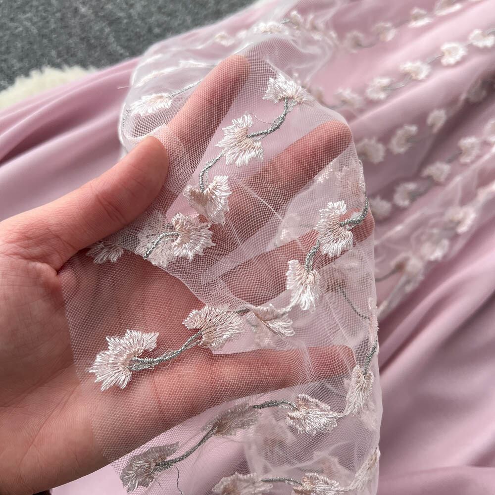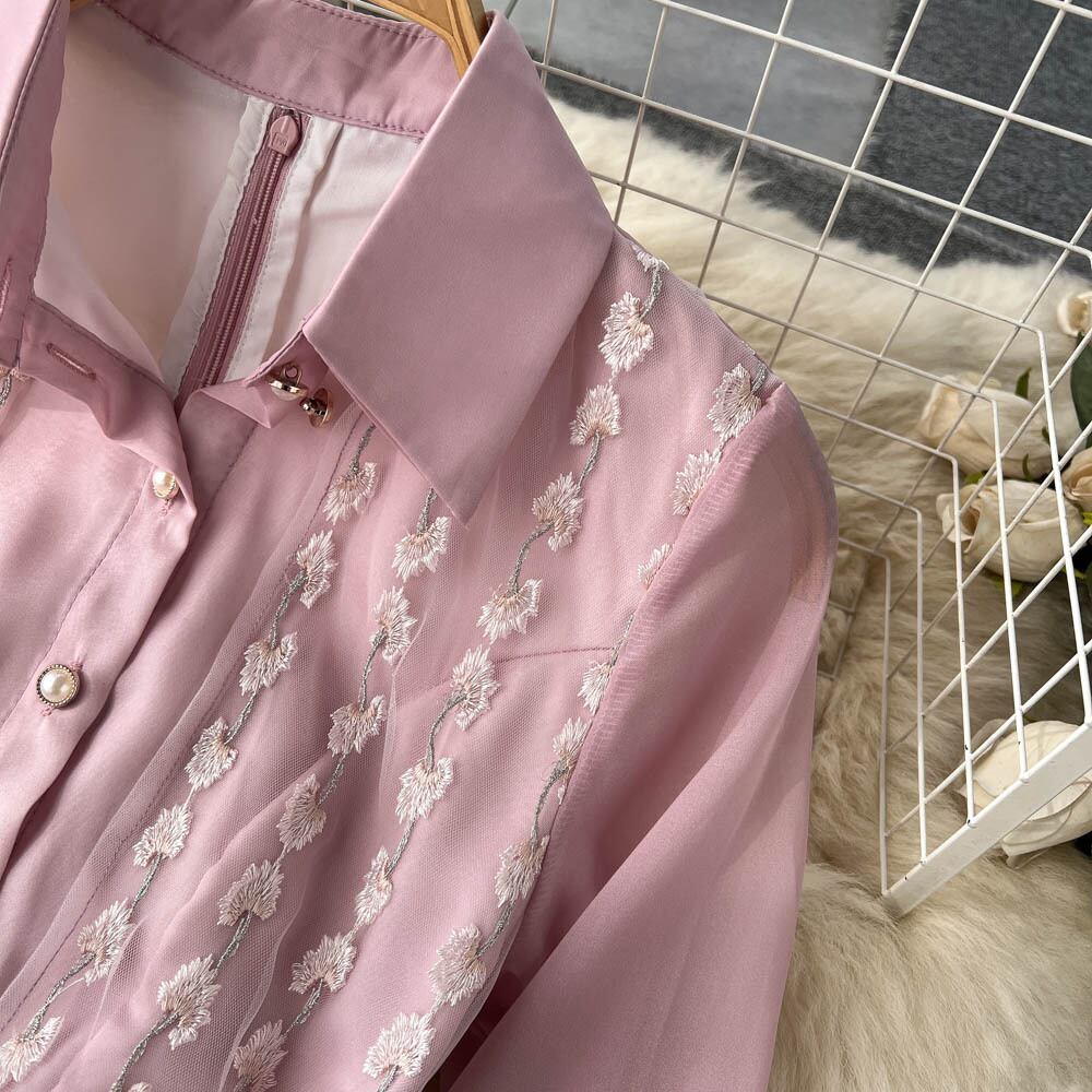 春と秋のシフォン スプライシング メッシュ ドレス女性のウエスト パフ スリーブ ラペル刺繍大スイング A ラインの妖精のドレス スプリング 春物 オータム 秋物 Aライン lyxaj83015851440