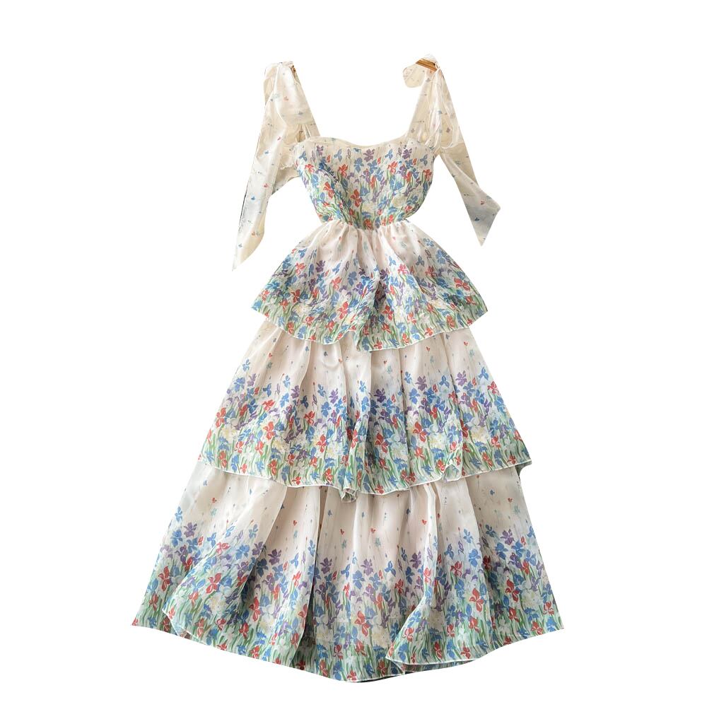 フランスのニッチなデザインセンスウエストメッシュドレス夏の女性の洋ナシの形の海辺の休日のケーキのスカート サマー 夏物 lyxaj50333749073