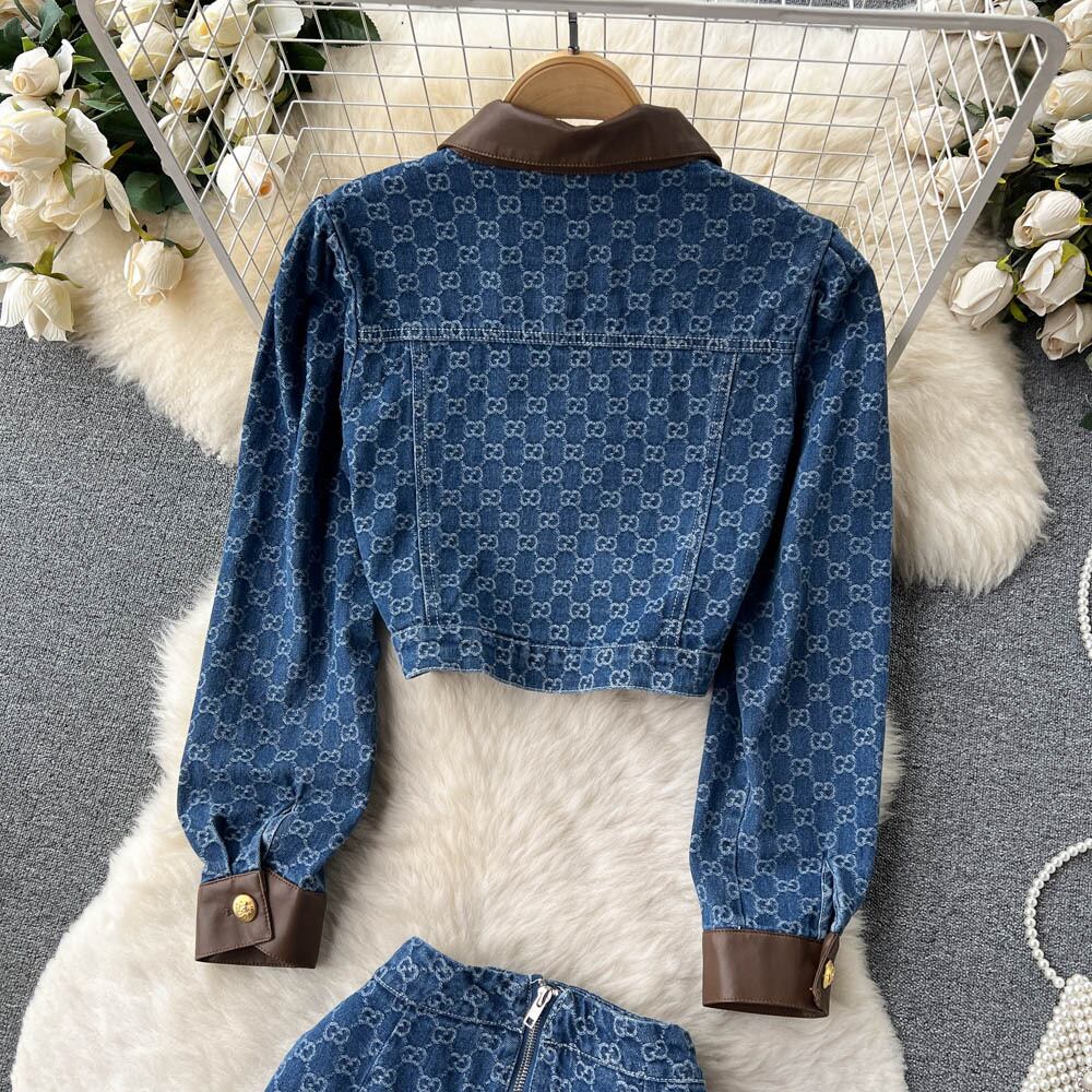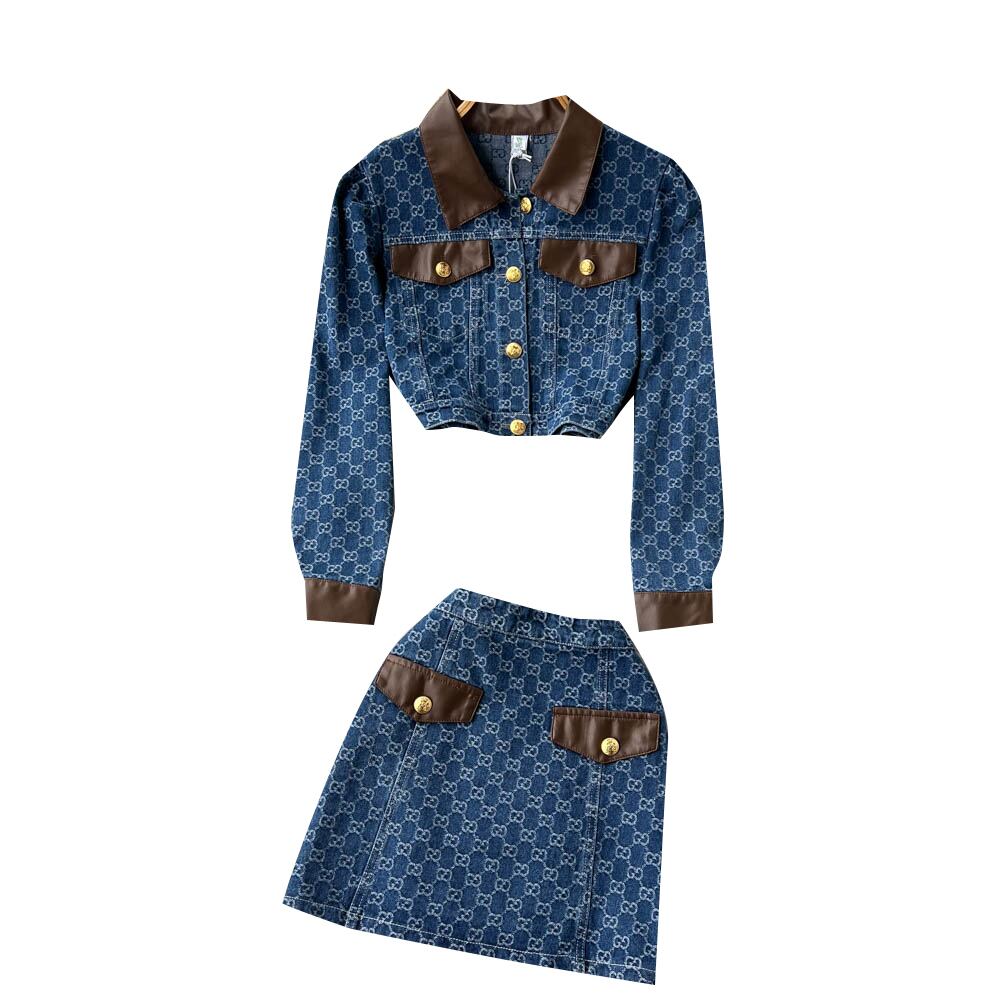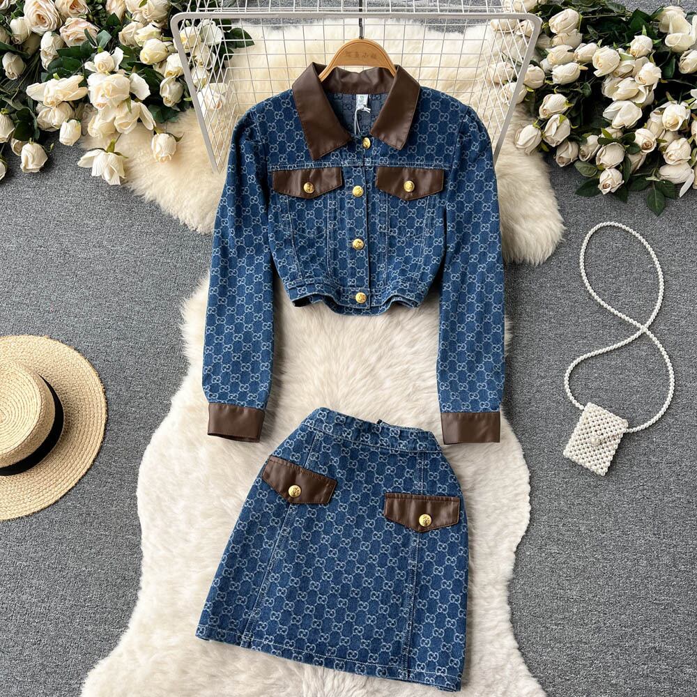 春秋スモールフレグランススタイルサブスーツカウカウボーイレザーコントラストカラートップ+ヒップスカートレトロツーピースセット スプリング 春物 オータム 秋物 lyxaj76501658541