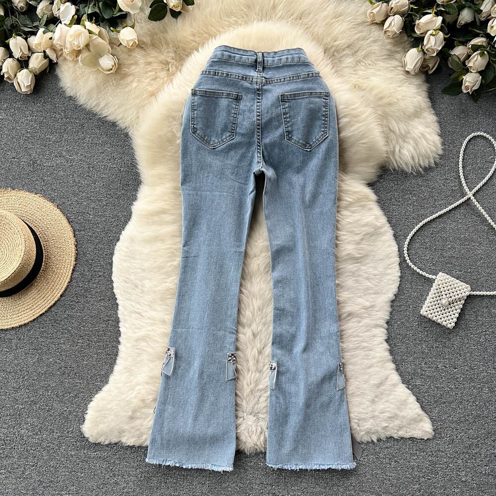2022 新重工業ダイヤモンドスタッズビーズちょう結びスリムハイウエストスリムリッピングデニムクロップドパンツ ハイウェスト リボン lyxaj9659544446