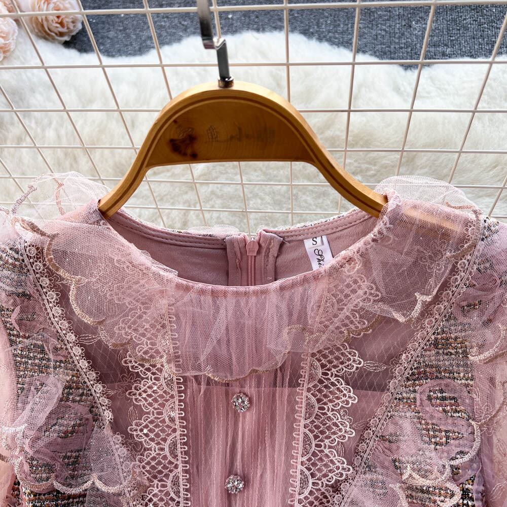 秋の新しいスタイルの高品質の刺繍メッシュ スリム フィット小さな香りフレンチ ミッドレングス ヒップパック レース ドレス トレンディ レッド オータム 秋物 lyxaj25304035698