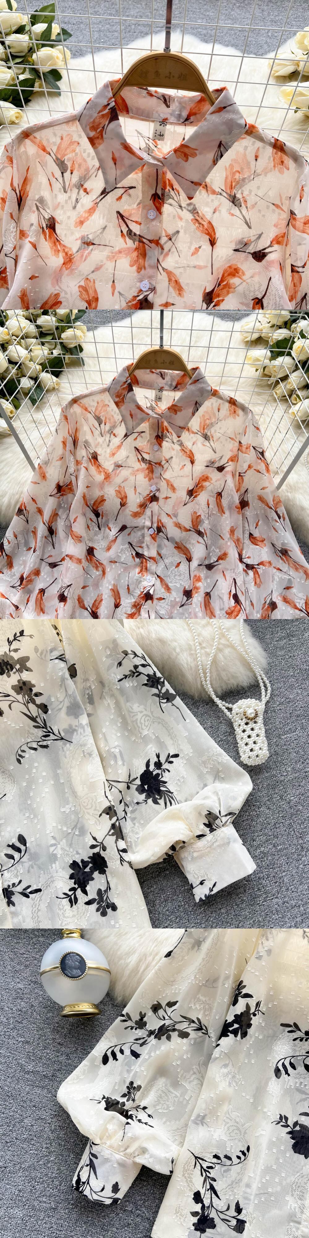 フランスのレトロな花柄の高品質のシャツの女性の春と秋の新しいルーズな気質のポロ襟スーパー妖精ウエスタン スタイル トップ スプリング 春物 オータム 秋物 lyxaj33912904458