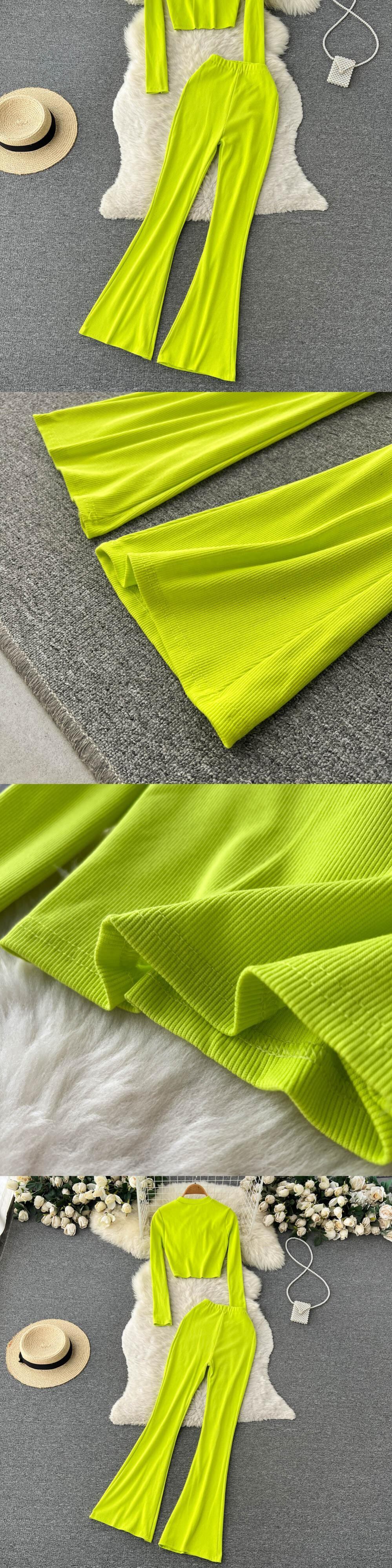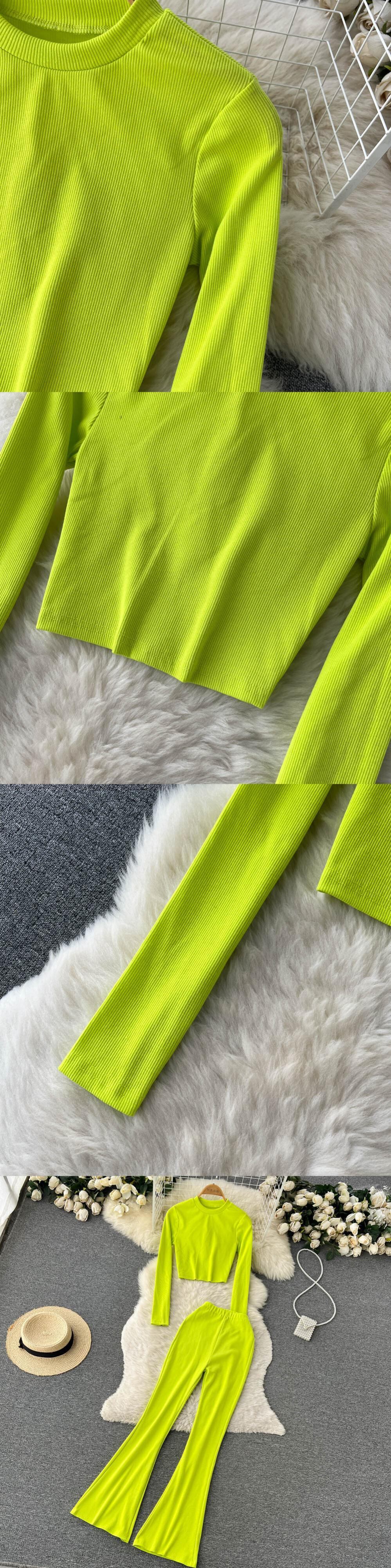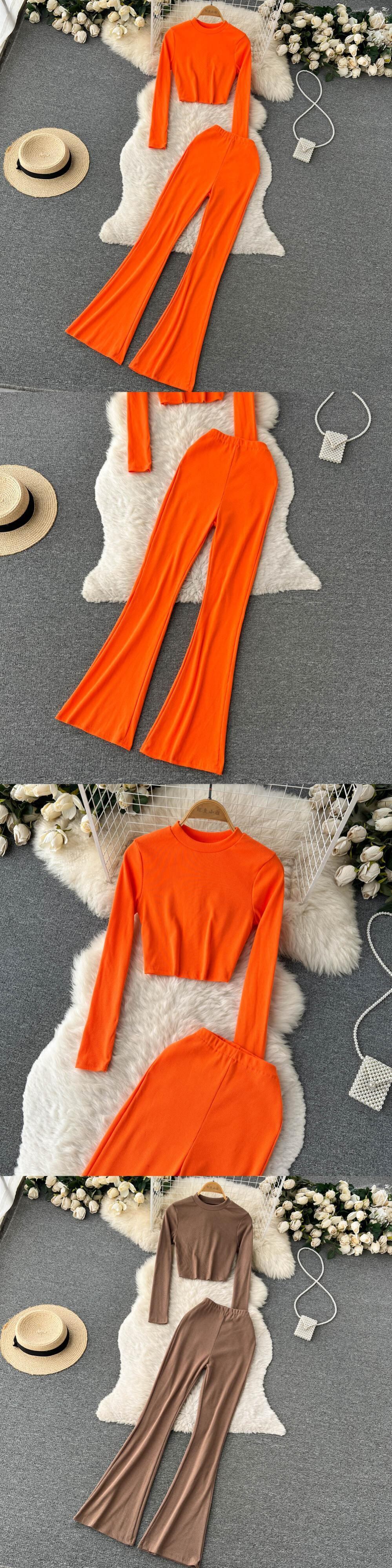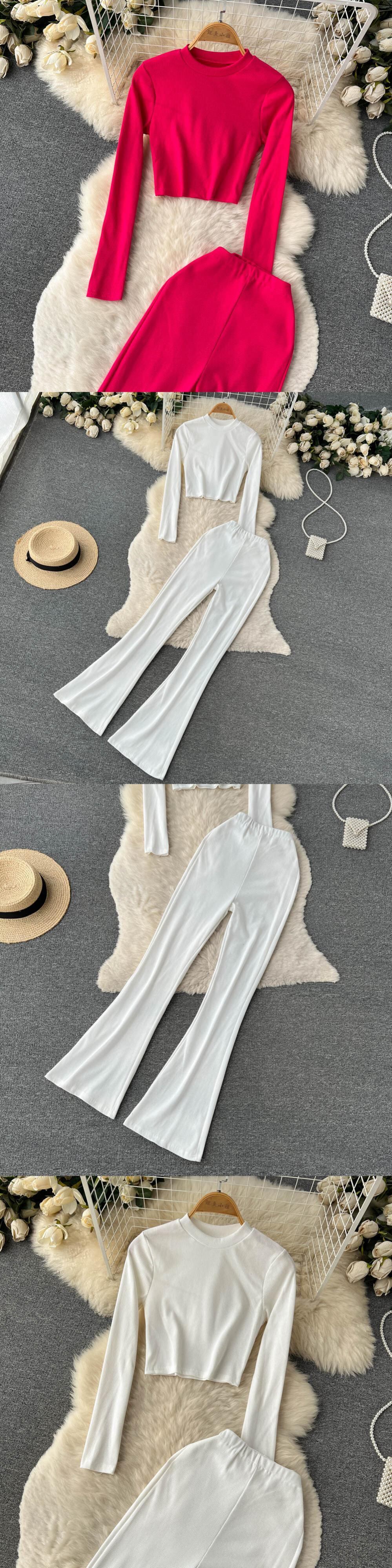 秋のスーツの女性の短い長袖ニットセーター + ハイウエストスリムニットカジュアルマイクロフレアパンツツーピーススーツトレンディ ハイウェスト ショート ロング レッド オータム 秋物 lyxaj809015322