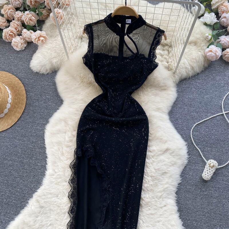 ライト調理風メッシュステッチ中空ノースリーブ改良チャイナドレス夏の婦人服スリムヒップスカート サマー 夏物 lyxaj87650157916