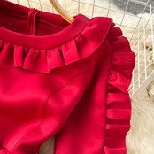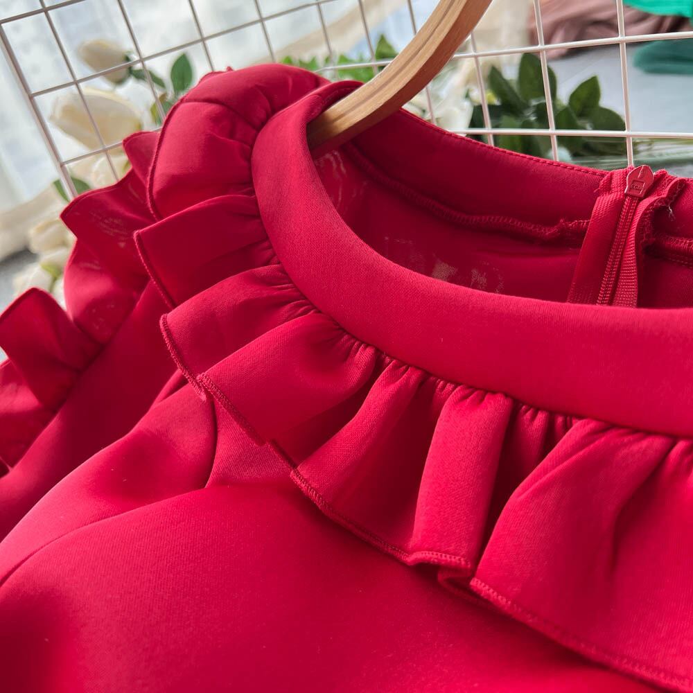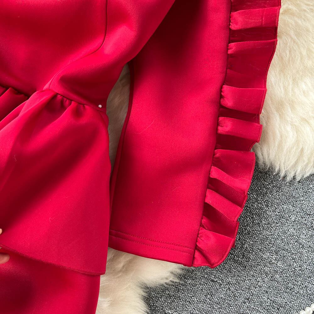 春と秋の新しいデザインのセンス フリル プリーツ エレガントな気質の自己修養バッグ ヒップ ファッション ドレス赤いイブニング ドレス レッド ラッフル スプリング 春物 オータム 秋物 lyxaj57166129774