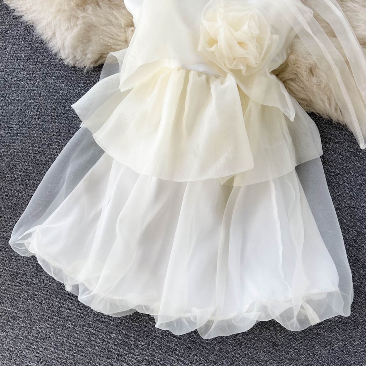 フランス気質の美しいチューブトップドレス夏の女性のユニークな小さなメッシュ糸のウエストふわふわのプリンセスドレス サマー 夏物 lyxaj68995116977
