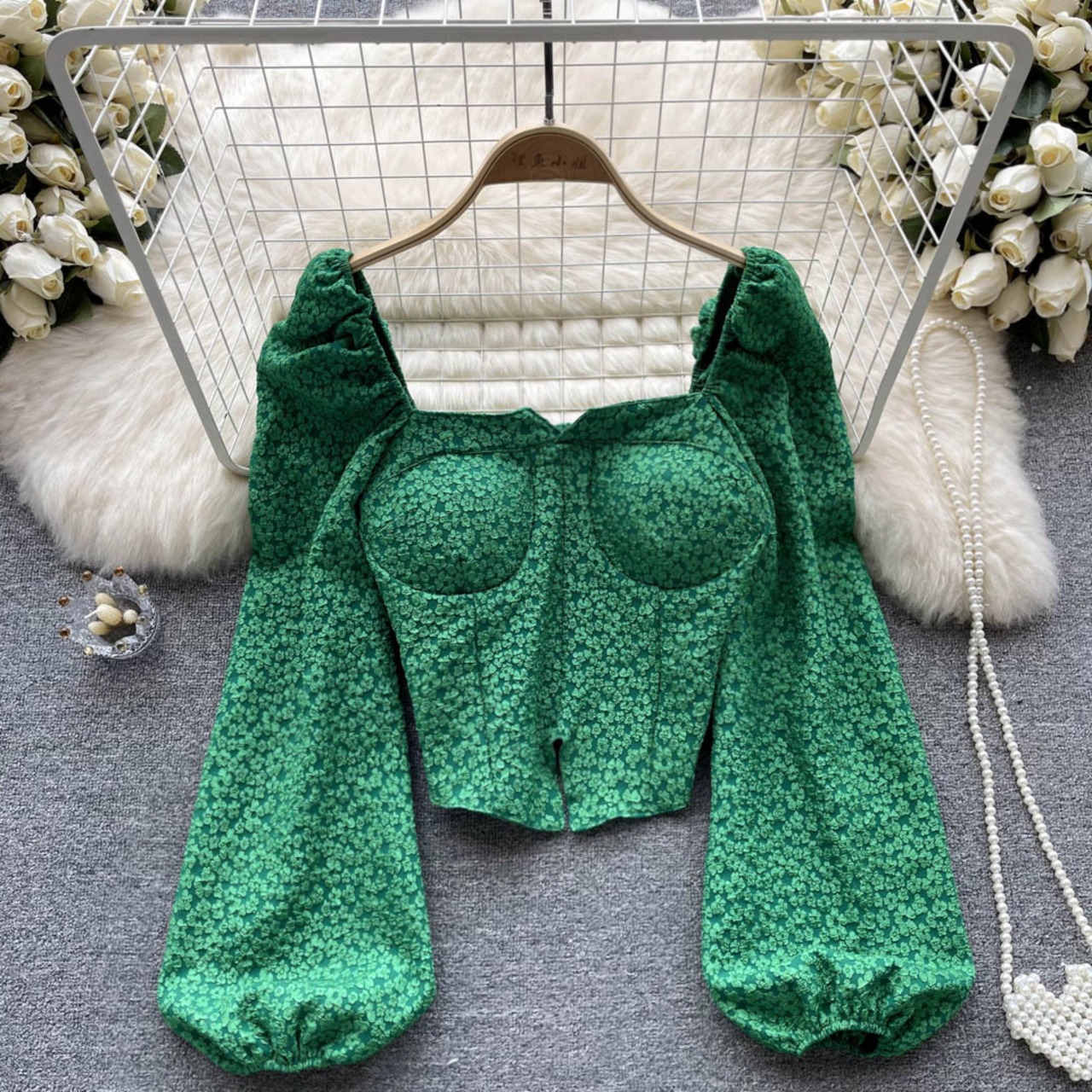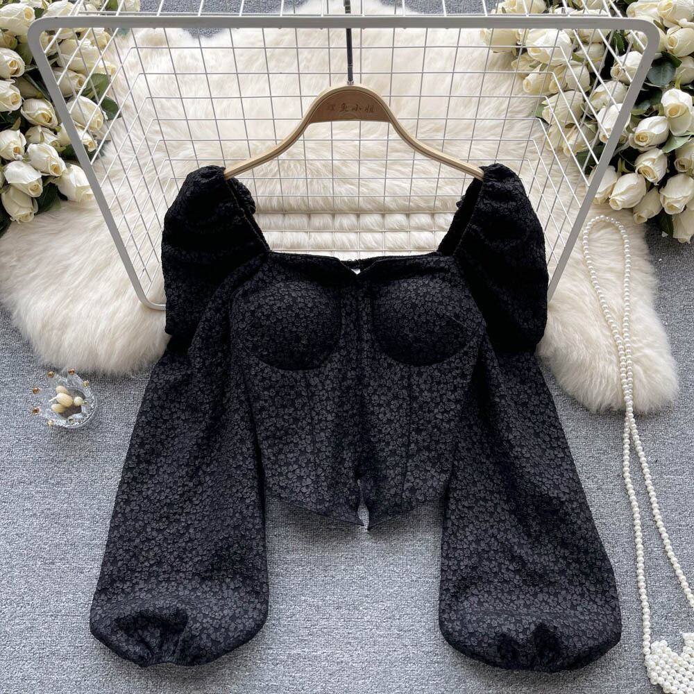 シャツの女性の秋の新しいスタイルの純粋な欲望スタイル フレンチ スクエア カラー レトロなデザイン センス ニッチ スリム ランタン スリーブ ラップ チェスト トップ ランタンスリーブ オータム 秋物 ピュア スクウェア lyxaj85020312409