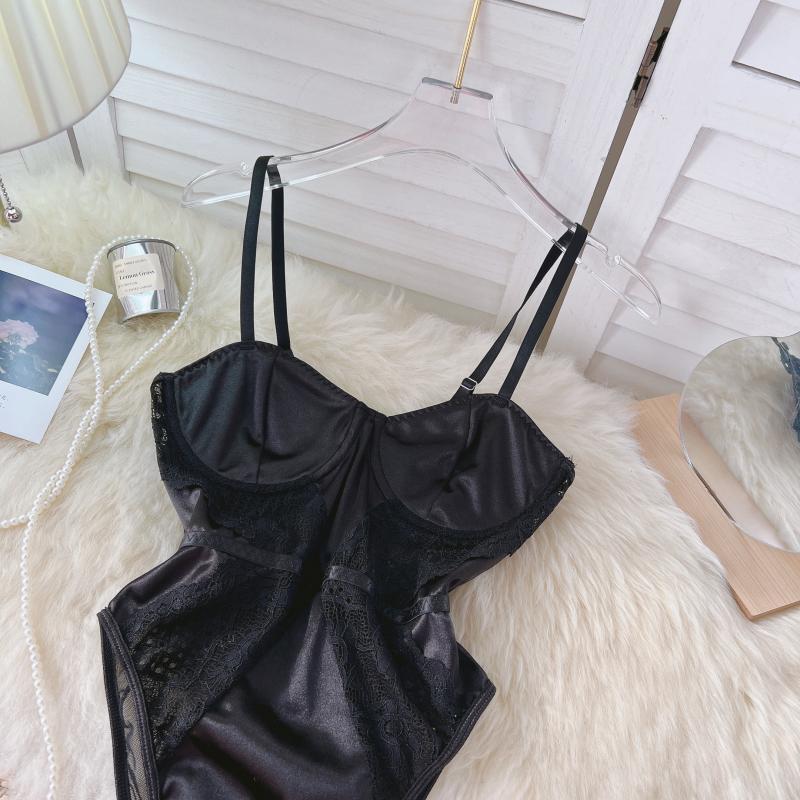 ホットウエスト痩身サスペンダーワンピースパンツ夏の女性の純粋な欲望風レースエッジ黒底入れ下着 ブラック サマー 夏物 ピュア lyxaj88779232948