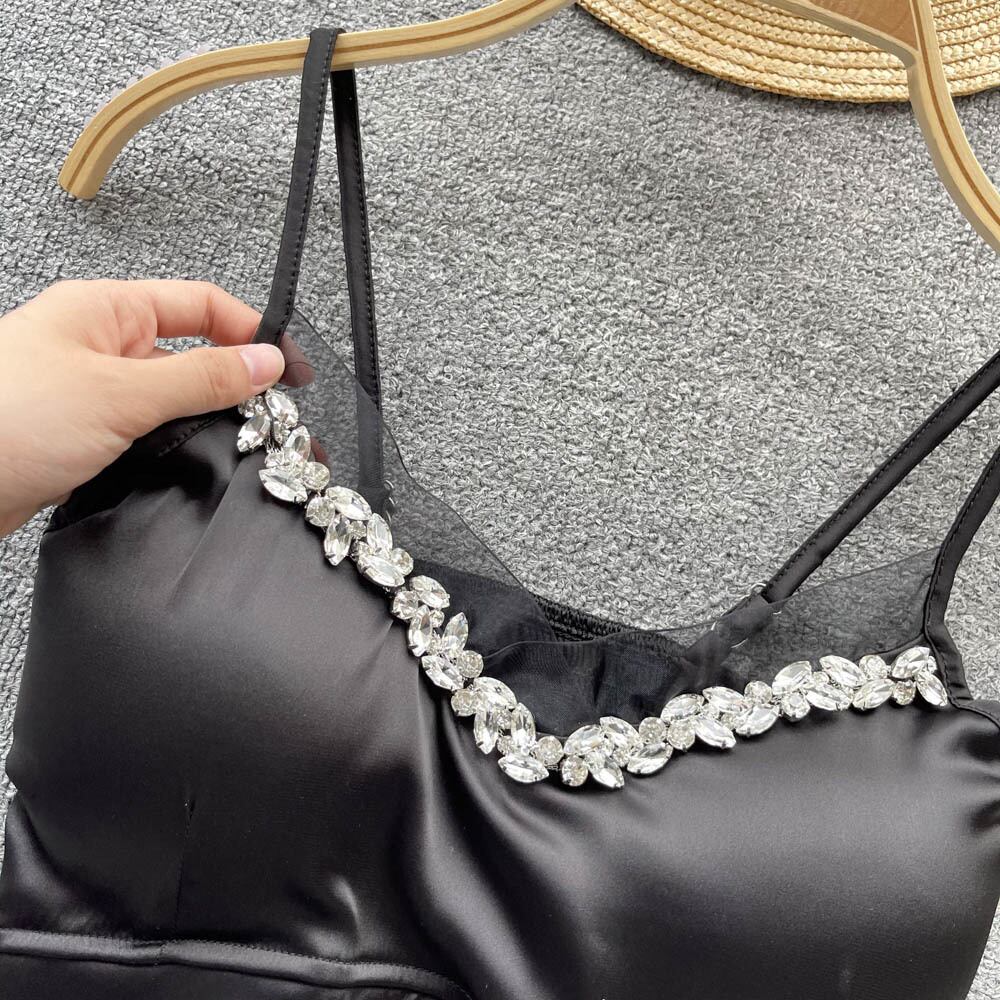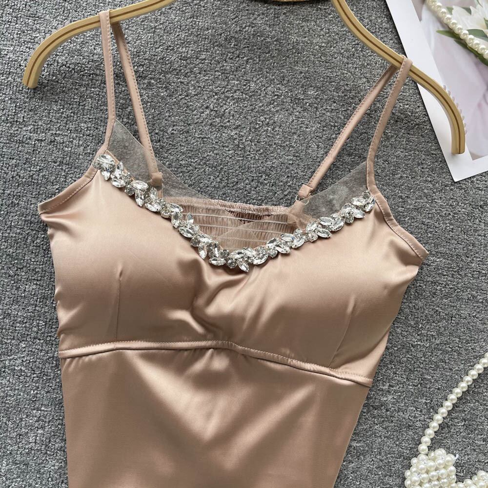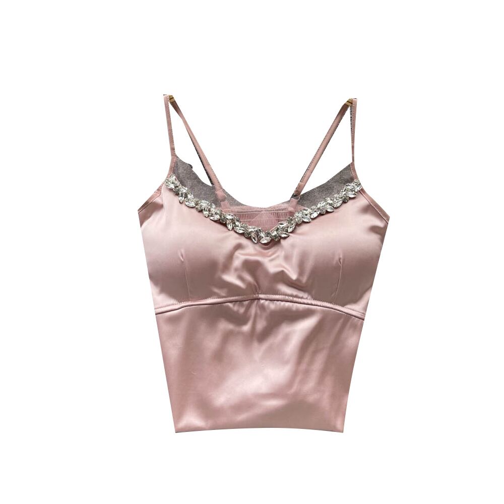 サテン レース 小さめ キャミソール レディース 重工業 ビーズ メッシュ ステッチ インナーウェア デザインセンス アウター ショート チューブトップ ファッション lyxaj1271082442