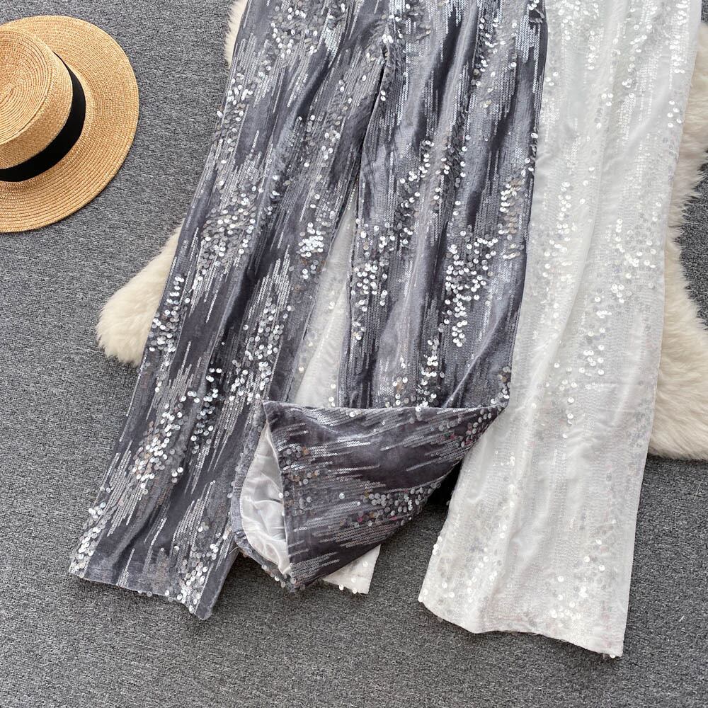 2022 春と秋できるスパンコールパンツ女性のイントレンディなセンスニッチウエストドレープワイドレッグパンツ スプリング 春物 オータム 秋物 ワイドパンツ lyxaj59523199874
