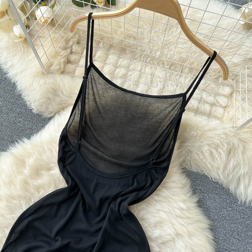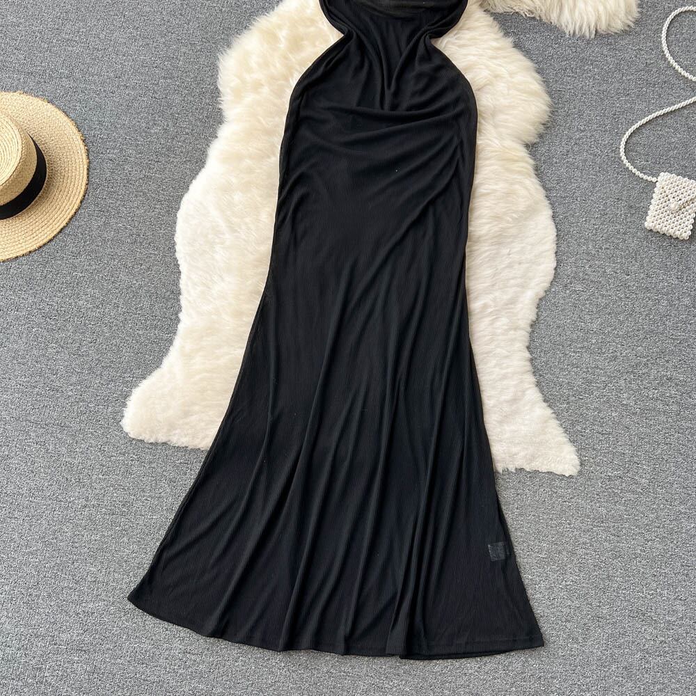 2022 夏新スリムサスペンダーロング背中の開いた純粋な欲望スタイルスリムカジュアル無地ドレスマーメイドロングスカート サマー 夏物 ピュア ソリッドカラー lyxaj1073053165