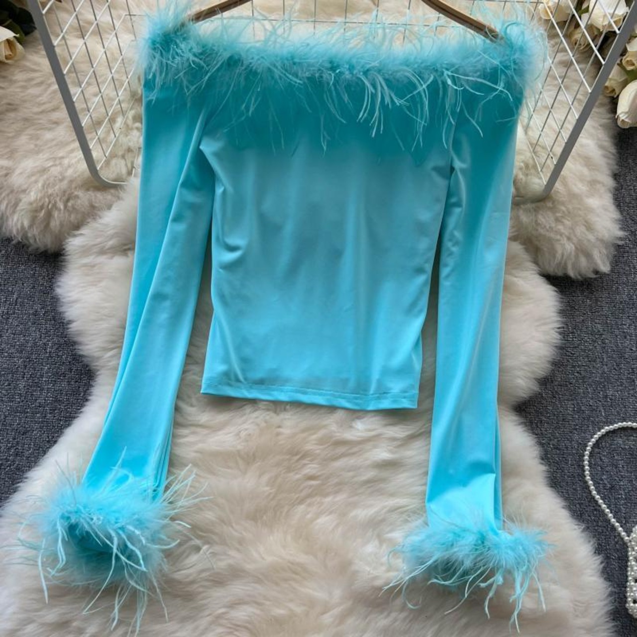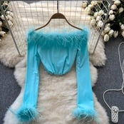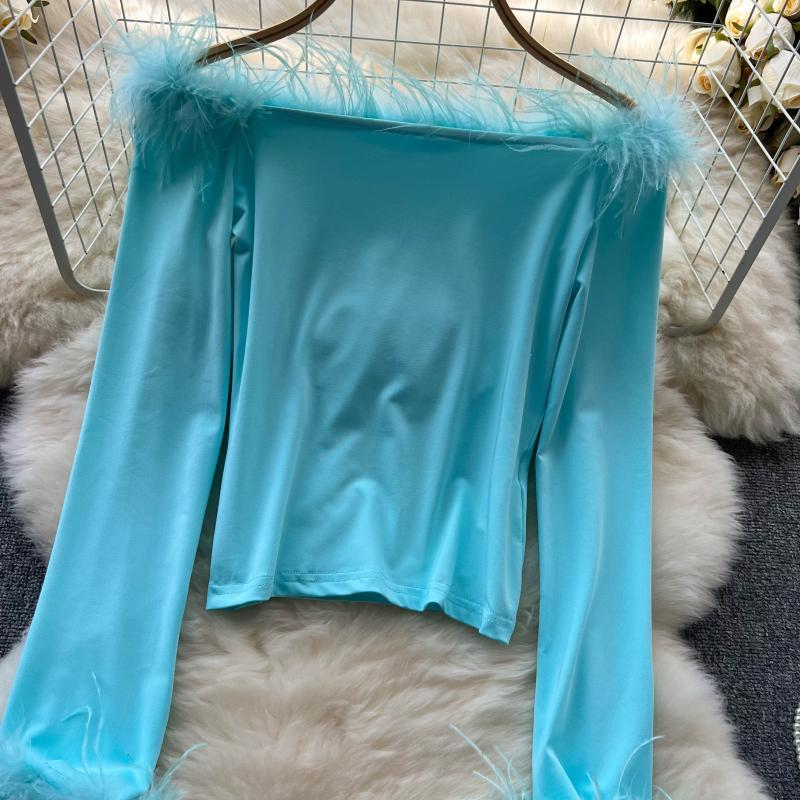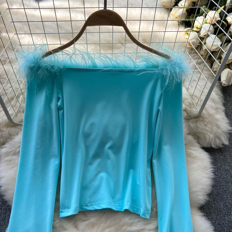 ヨーロピアンスタイルとアメリカンスタイルのインデザイン感豪華なスプライシングワンショルダーフレンチトップレディース秋長袖ストリートショートTシャツ潮 ロング オータム 秋物 lyxaj93084667877