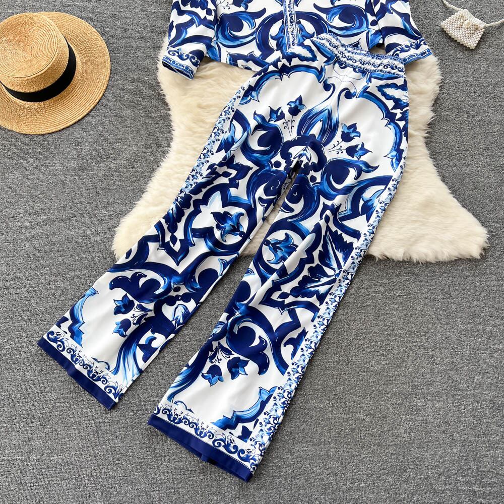 有名人の気質の秋服 2022 新しい女性のスーツプリントルーズ長袖シャツハイウエストカジュアルロングパンツトレンディ ハイウェスト オータム 秋物 lyxaj20587000613