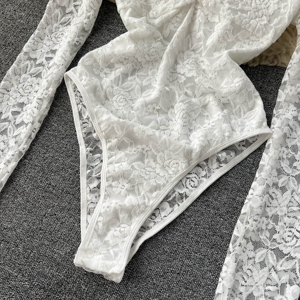 春秋 網ガーゼ レース 刺繍 セクシー レース Vネック ガーゼ レディース 洋風 長袖 ボトムス ハイカット ジャンプスーツ ロング スプリング 春物 オータム 秋物 lyxaj52707314978
