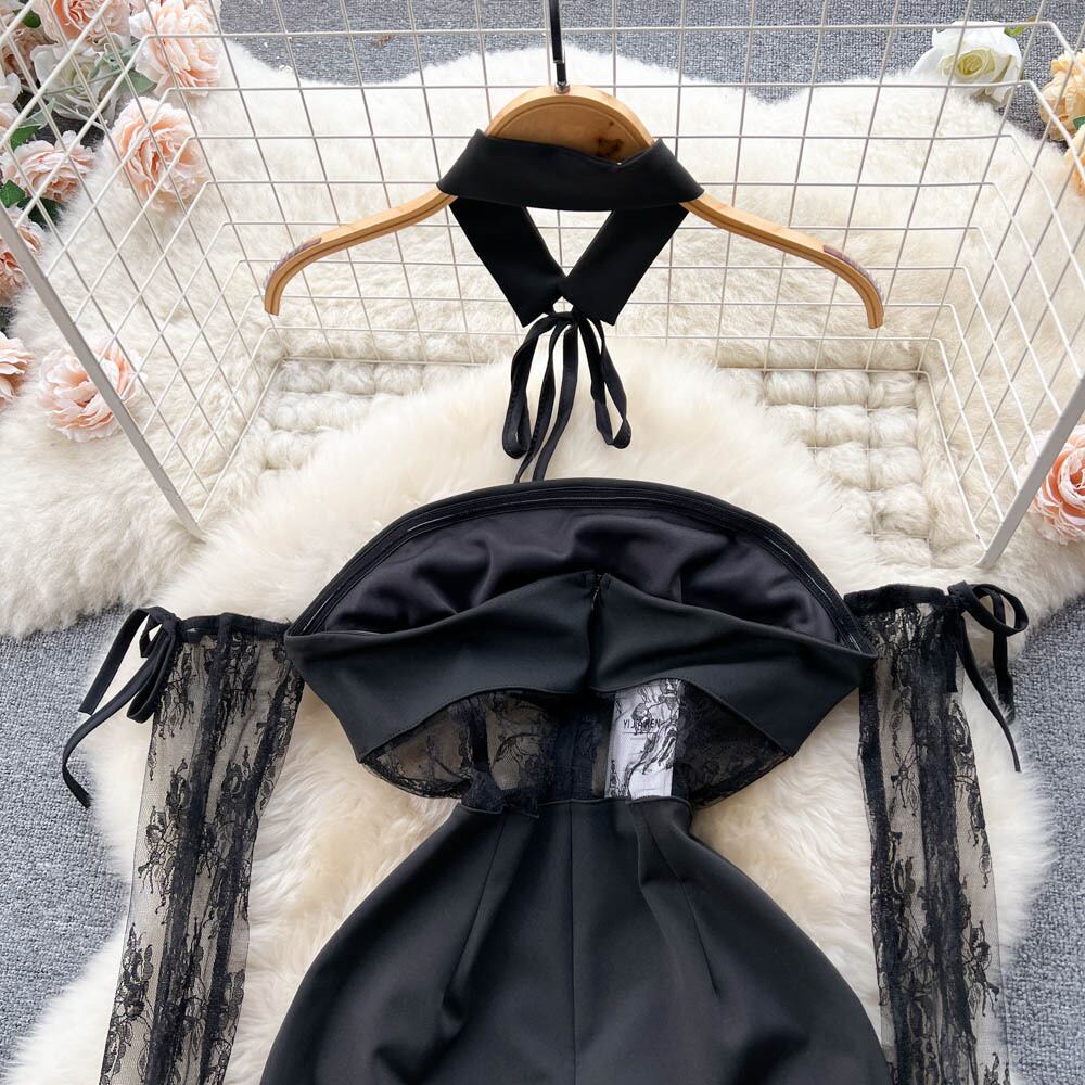 夏感覚気質レディセクシーなオフショルダーレースステッチレシーバーポケットヒップドレスホルターネックチューブトップドレス サマー 夏物 lyxaj61666885352