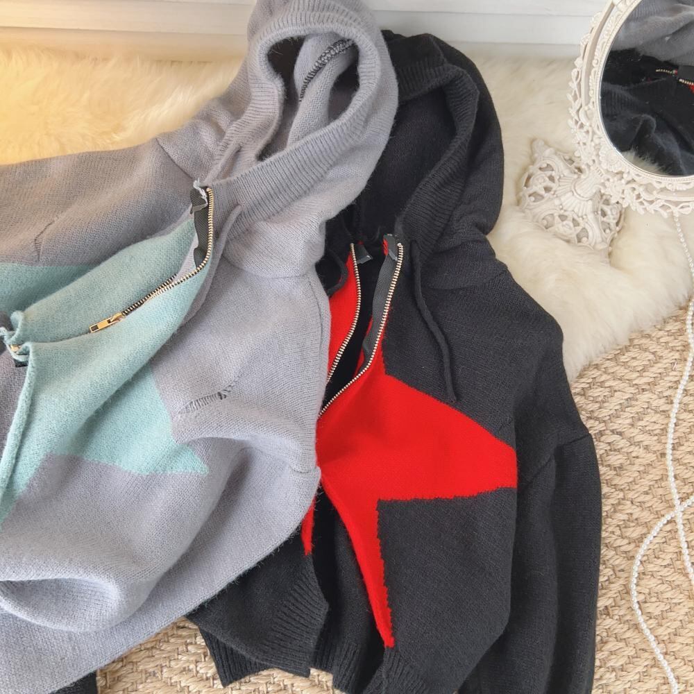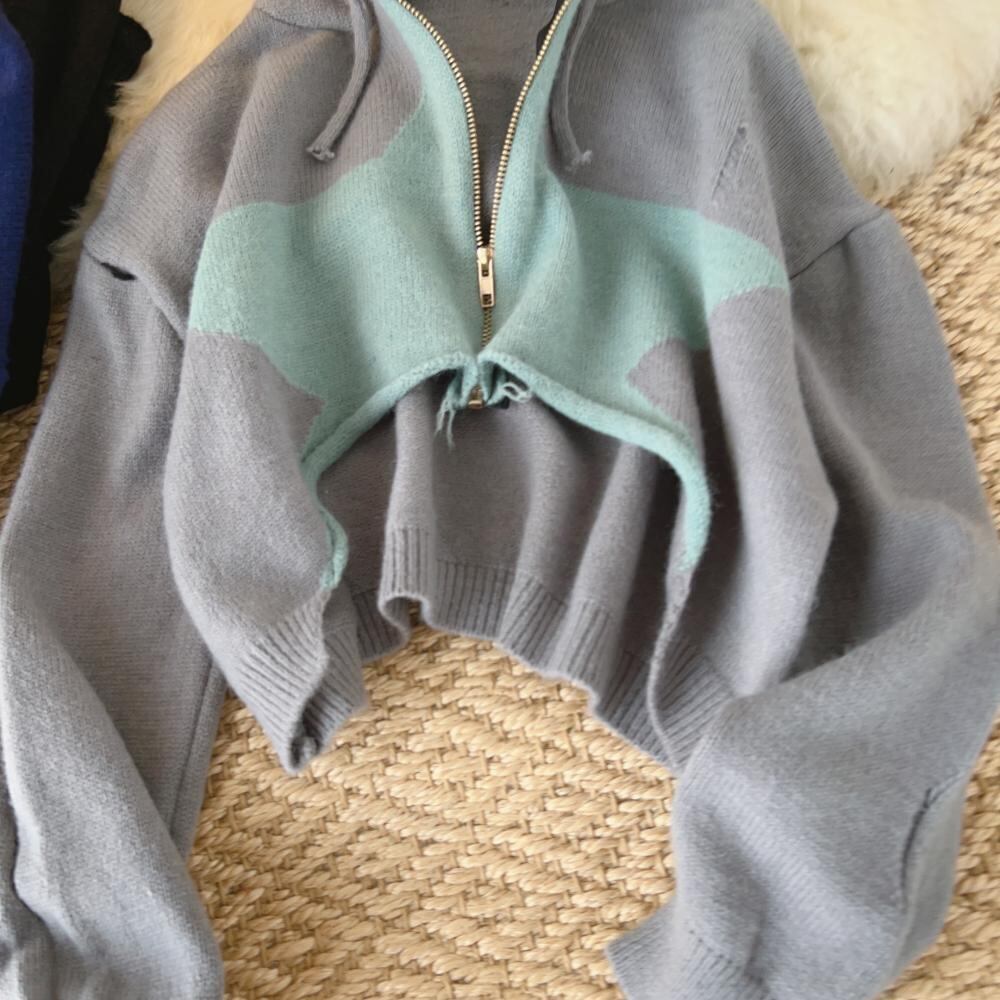 センス ニッチ カラー スター フード付き ジッパー ジャケット レディース 秋冬 ファッショナブル 気質 モヘア ショート セーター オータム 秋物 ウィンター 冬物 lyxaj51682767134