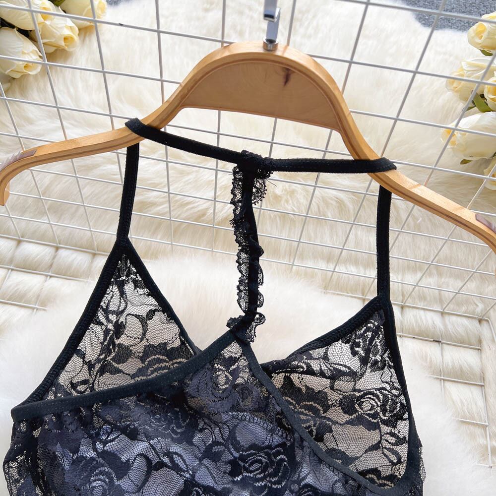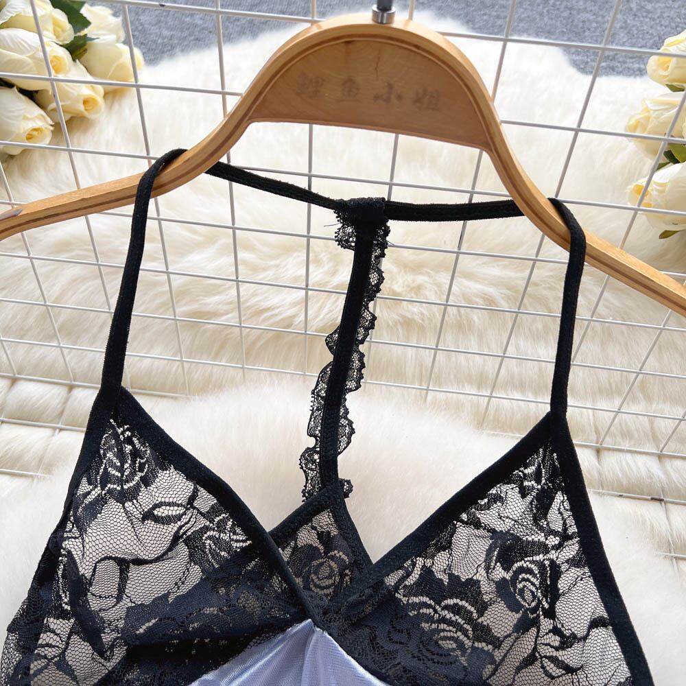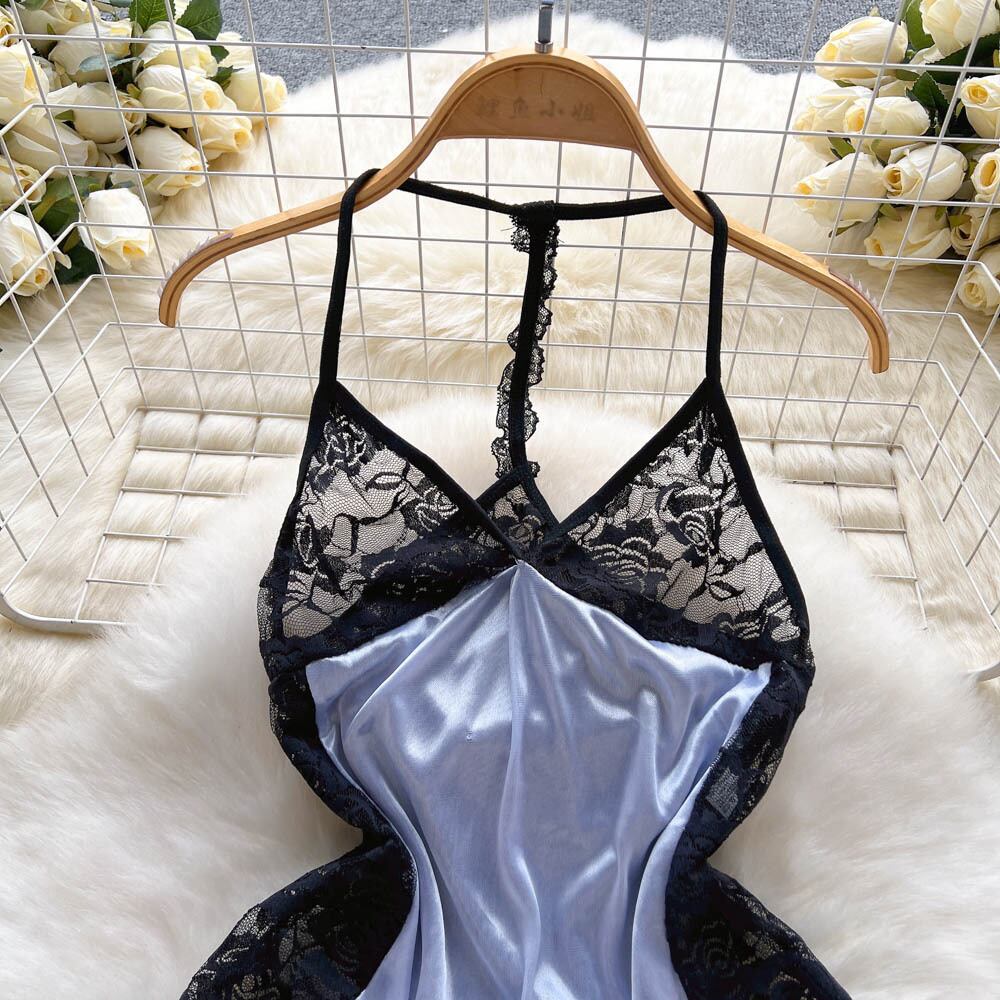 純粋な欲望風レースステッチホルターネック美しい背中寝間着女性 2022 夏新セクシーなサスペンダースカートパンティセット サマー 夏物 lyxaj55351208581