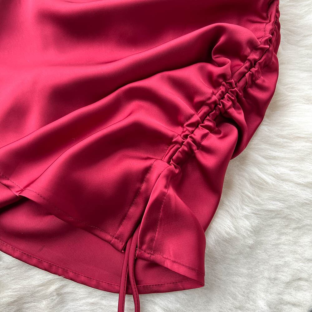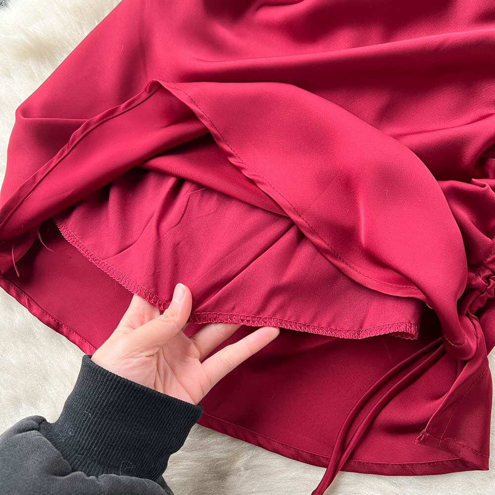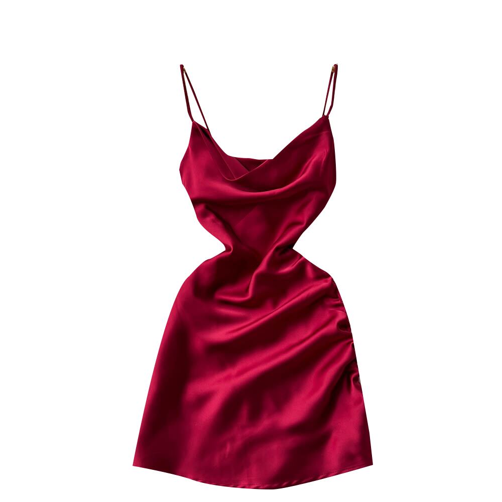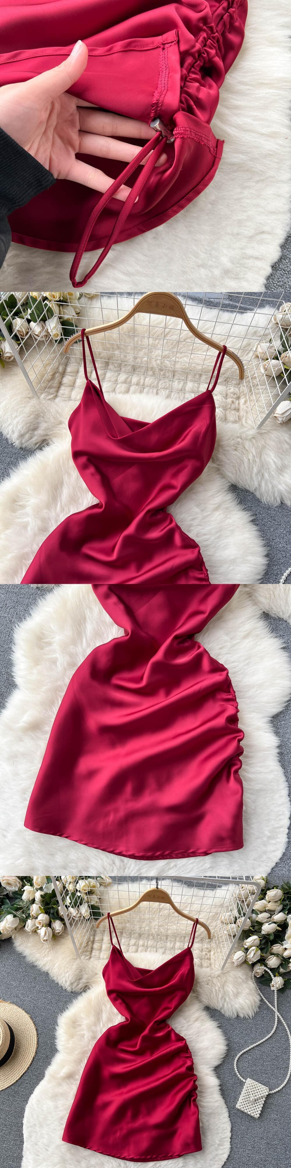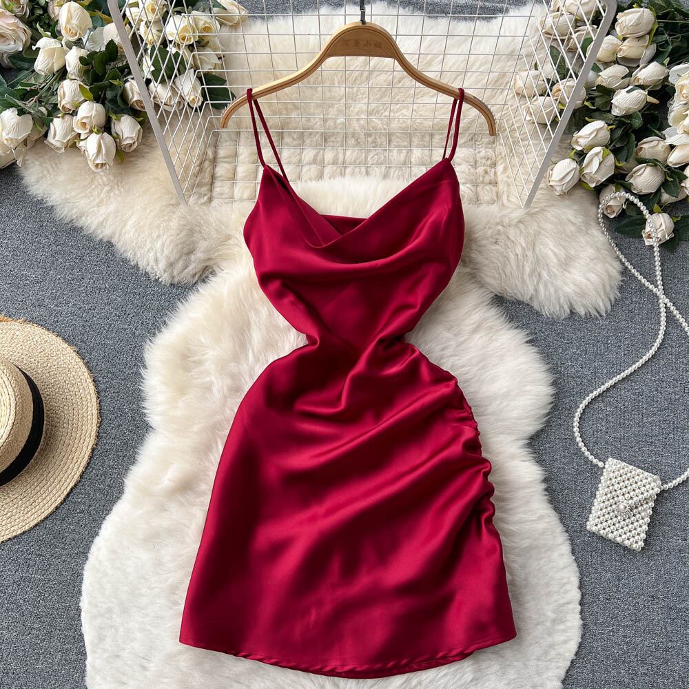 夏のセクシーなスイング襟サスペンダーバッグヒップショートスカート女性有名人気質ウエスト痩身純粋な欲望風サテンドレス サマー 夏物 ピュア lyxaj65731369597