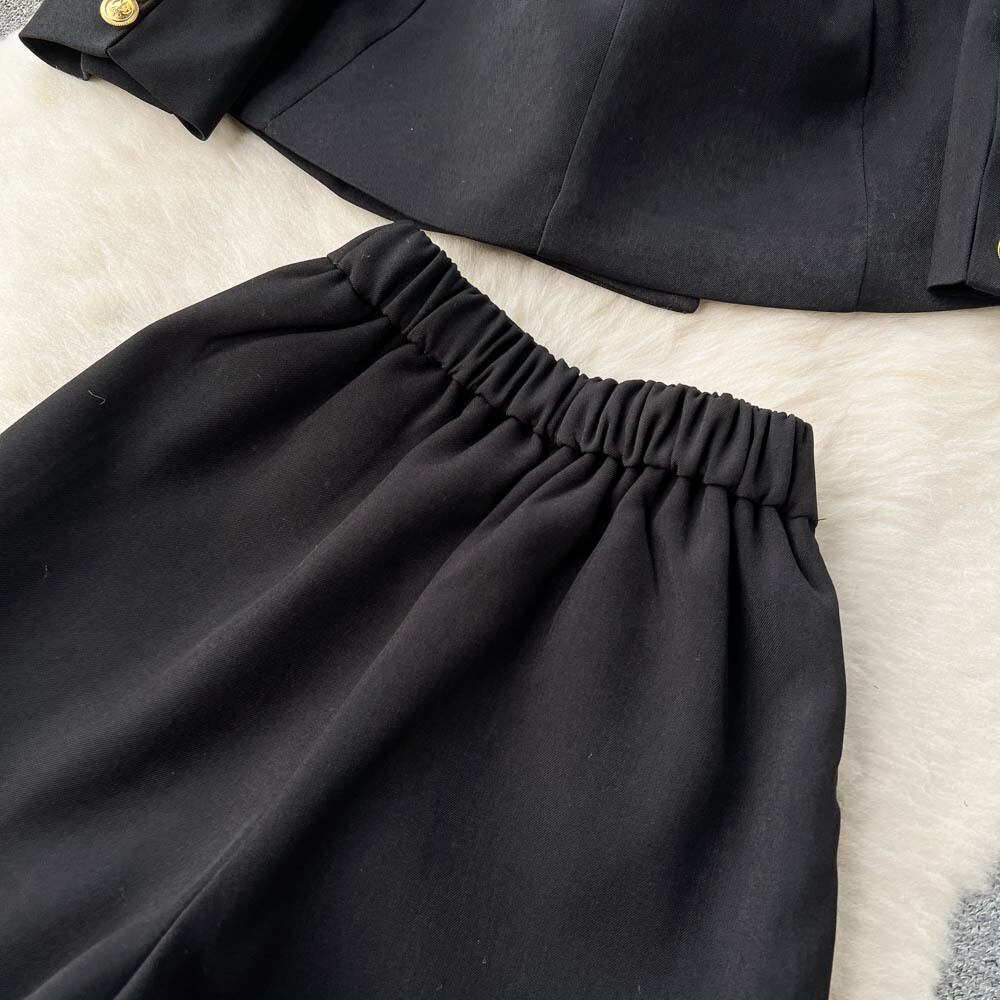 style シックなレディスーツ スーツ 女らしさ シングルブレストスーツ ジャケット+ハイウエスト ワイドレッグショーツ 2点セット ハイウェスト ブルマー ワイドパンツ lyxaj50940244174
