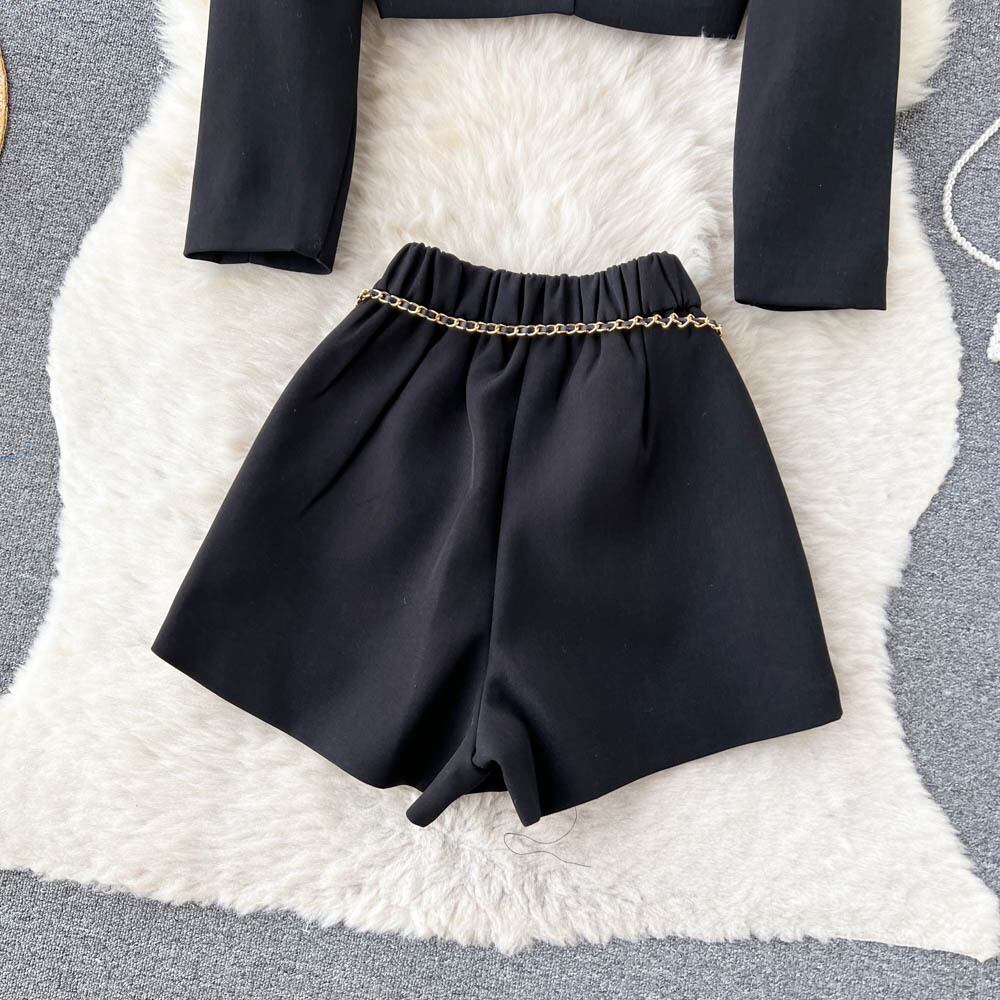 春の新作ハイエンドスーツレディースショートラペル長袖スーツ+ハイウエストワイドレッグショーツ2点セット ハイウェスト ロング スプリング 春物 ブルマー lyxaj17963887359