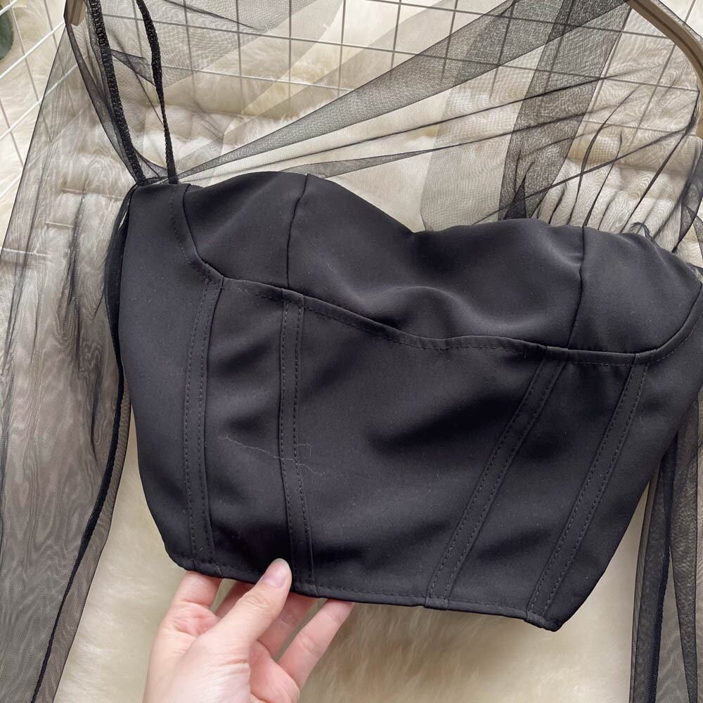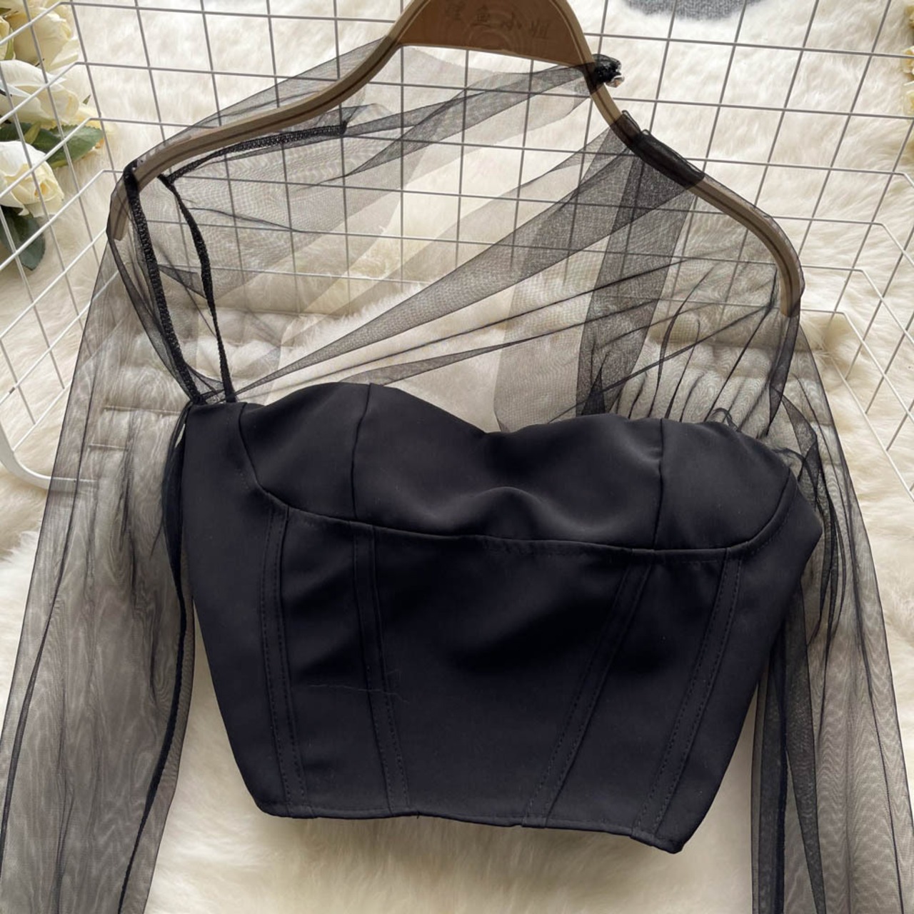 2023 春と夏の新しい長袖シフォンシャツ女性の背中の開いた純粋な欲望風妖精メッシュショートシックなトップ ロング スプリング 春物 サマー 夏物 ピュア lyxaj30605948047