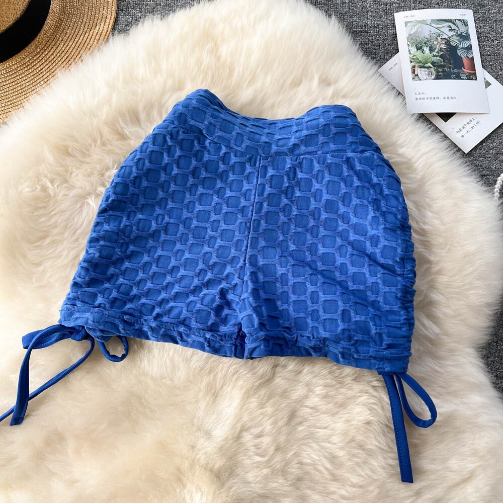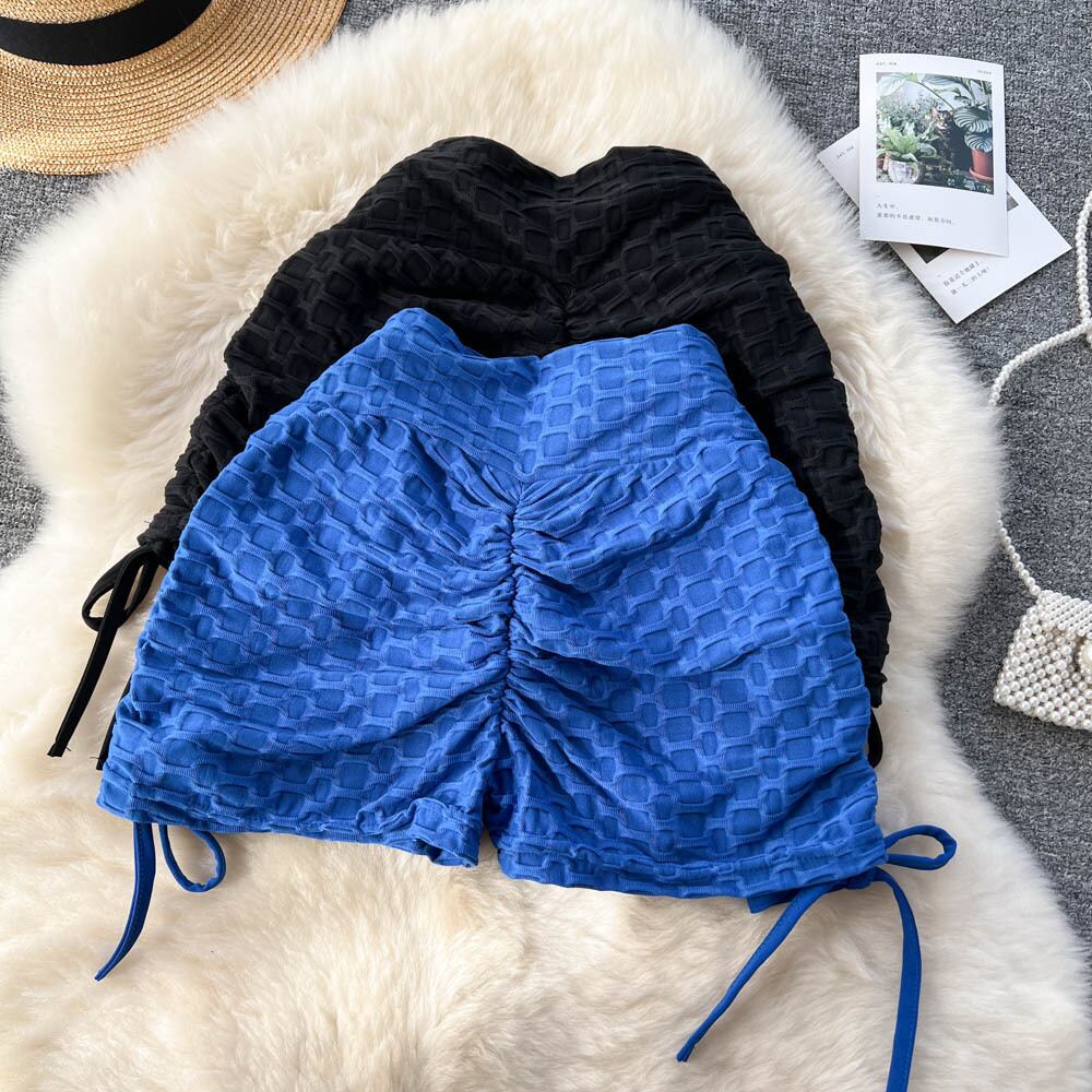 夏ピーチヒップスポーツヨガショーツ女性のハイウエストヒップリフティング弾性タイツスリム巾着プリーツパンツトレンディ ハイウェスト エラスティック 伸縮 サマー 夏物 ストッキング ソックス ブルマー lyxaj73294619008