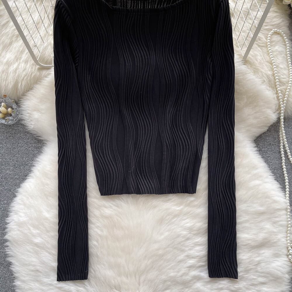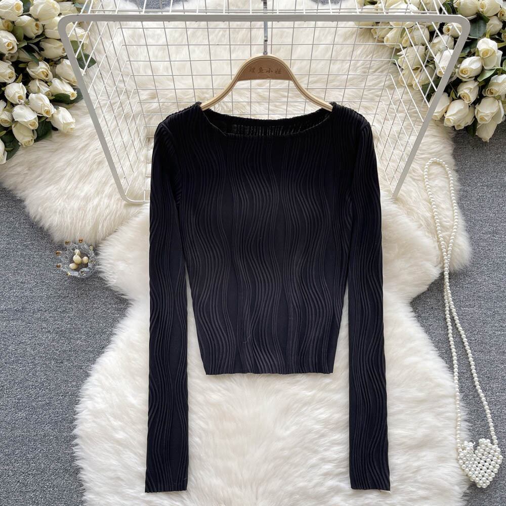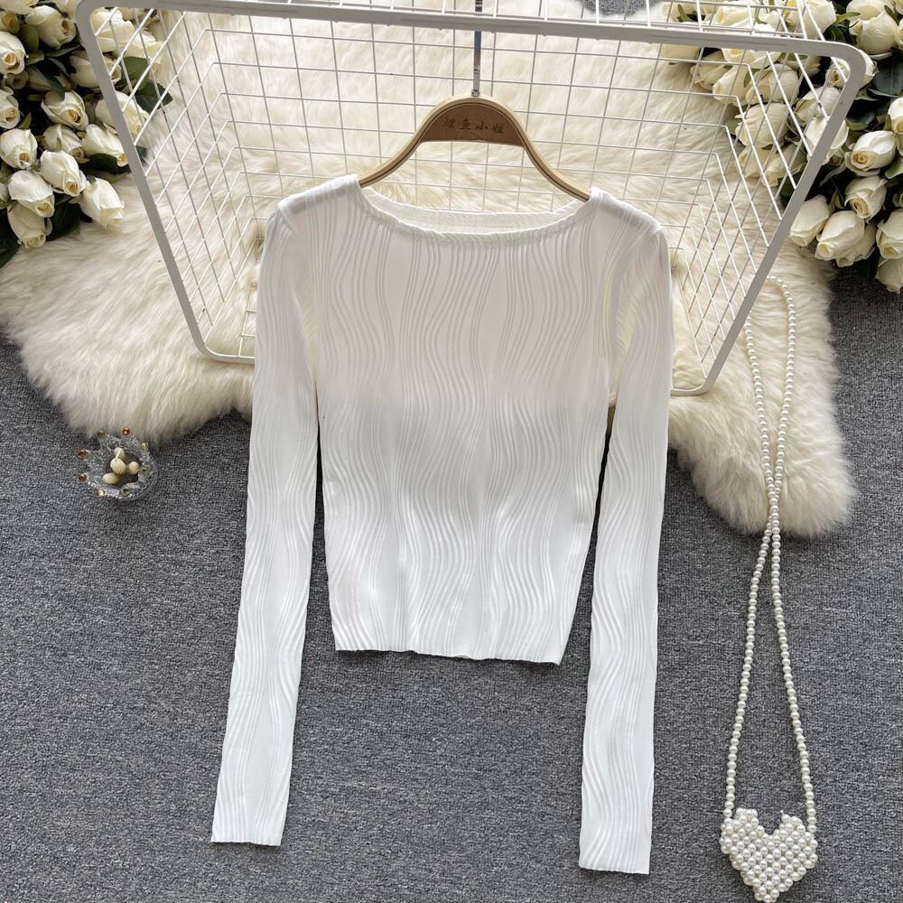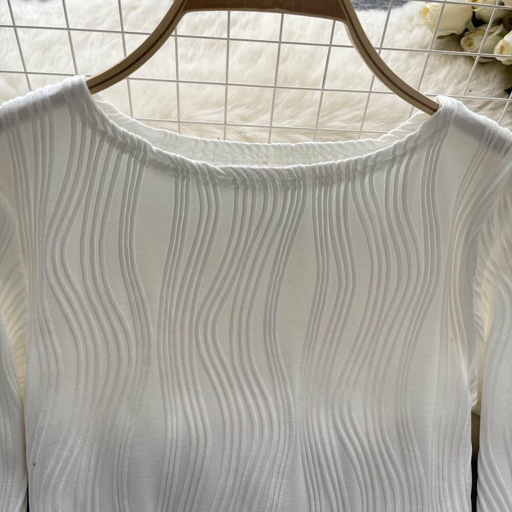 センス長袖トップレディース秋冬新作フレンチ気質風合いセンスニッチ無地シックなボトムスシャツ ロング オータム 秋物 ウィンター 冬物 ソリッドカラー lyxaj25145816550