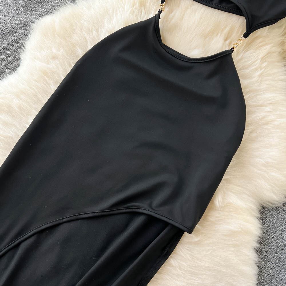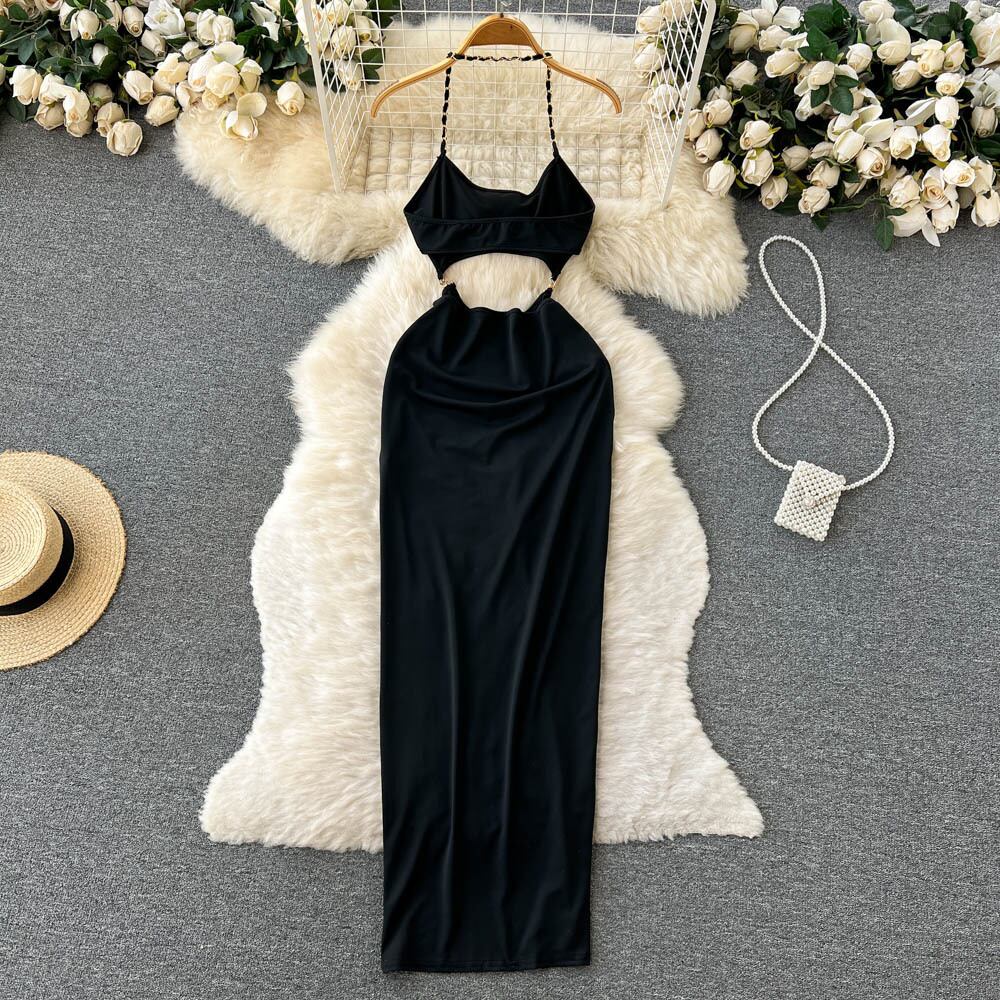 ヨーロッパとアメリカのスタイルのニッチなデザイン中空セクシーなサスペンダー ドレス夏女性不規則なバッグ ヒップ リトル ブラック ドレス サマー 夏物 ヨーロピアン lyxaj32490440706