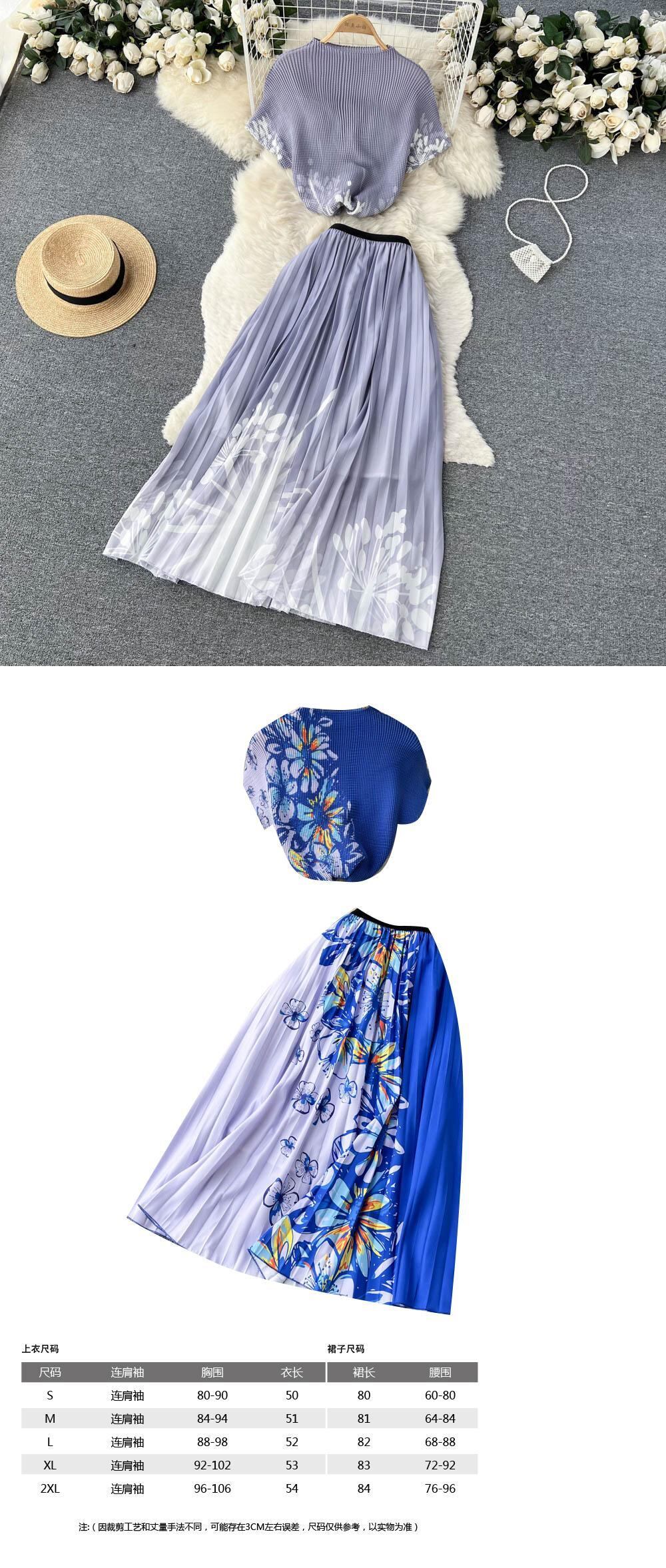 エスニック スタイル ツーピース スーツ女性の夏の気質セレブ プリント ショート T シャツ トップ ミドル丈スカート トレンディ サマー 夏物 Tシャツ lyxaj95534685916