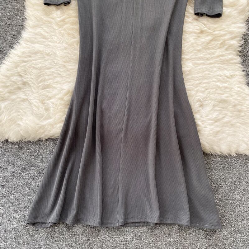 2022 秋の新スタイル気質自己修養純粋な欲望風長袖ハイネックジッパードレスレトロバッグヒップマーメイドドレス ロング オータム 秋物 ピュア lyxaj72211937933