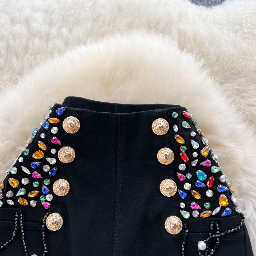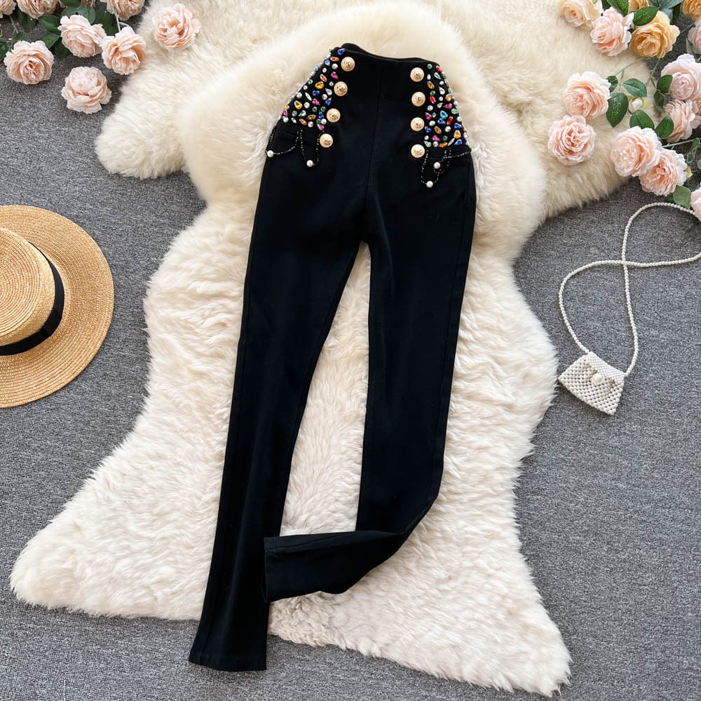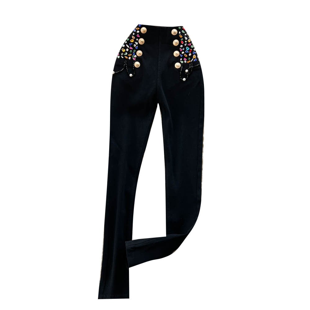 2022 秋の新ハイウエストと小さな足弾性スリムオールマッチ痩身デザイン重工業ビーズ鉛筆レギンス ハイウェスト エラスティック 伸縮 オータム 秋物 lyxaj50065214896