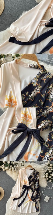 ヨーロッパとアメリカのスタイルの V ネック フレンチ レトロ花柄モザイク ドレス女性の春と秋の新しいウエスト ウエスト ホリデー スタイル A ライン スカート潮 スプリング 春物 オータム 秋物 Vネック Aライン ヨーロピアン lyxaj40956070894