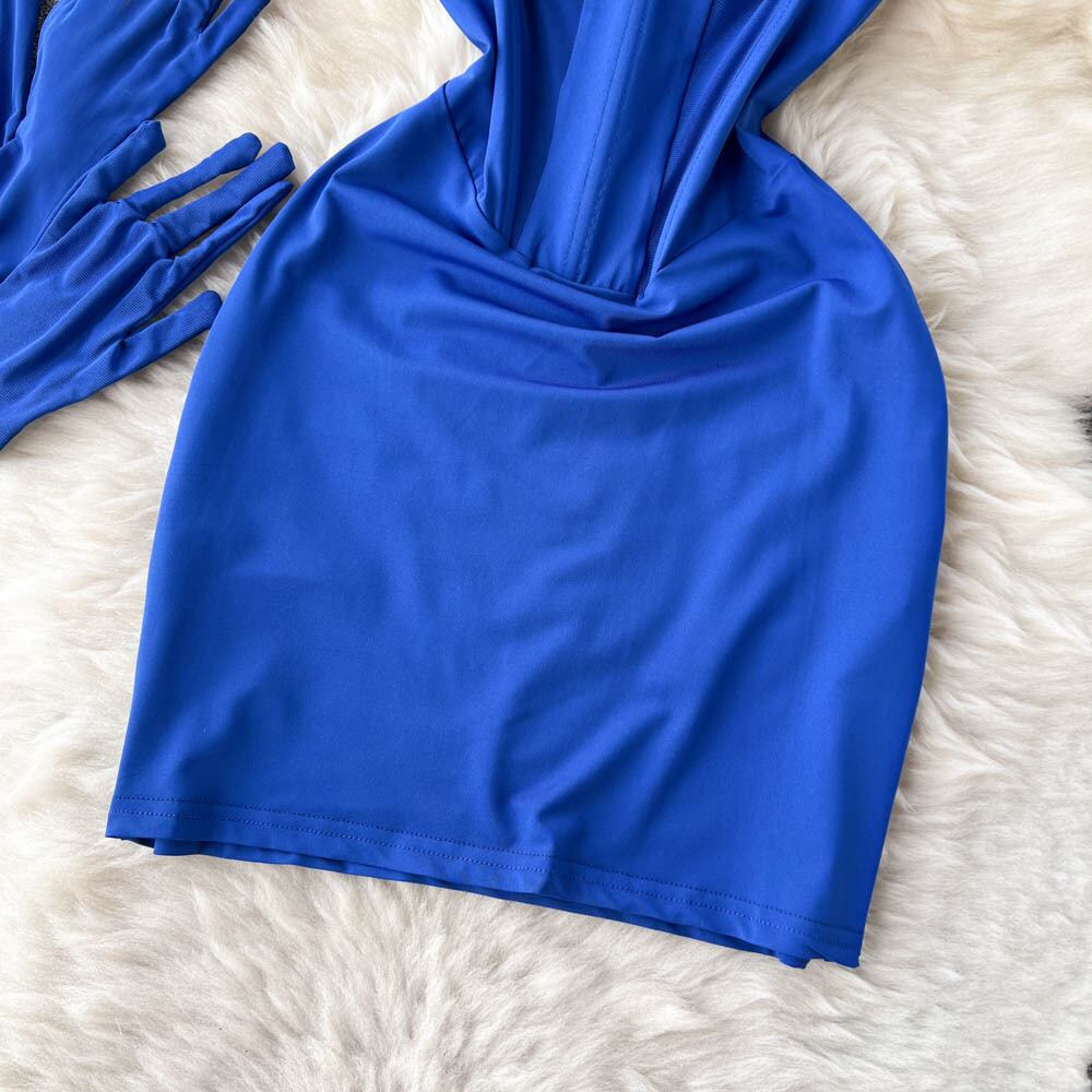 ヨーロッパとアメリカの新しい春と秋のセクシーなメッシュ スプライシング スリム フィット バッグ ヒップ中空アウト ストラップ ドレス女性と袖 スプリング 春物 オータム 秋物 ヨーロピアン lyxaj42356027841