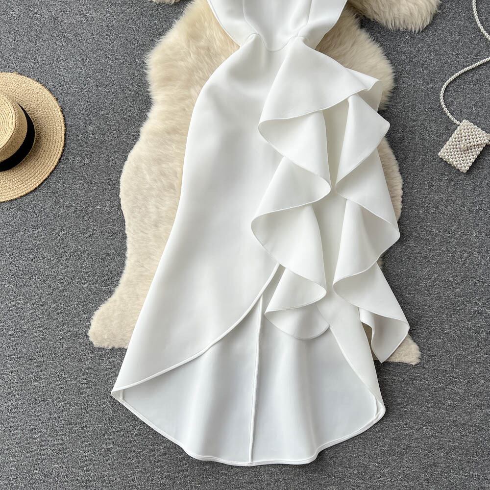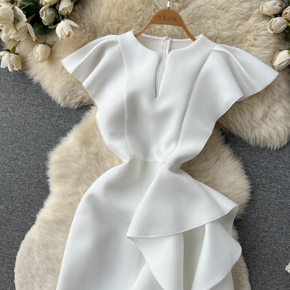 春秋立体裁断Vネックハイエンドフリルイレギュラーウエストと大振りドレススカートセレブドレス スプリング 春物 オータム 秋物 lyxaj20789695668