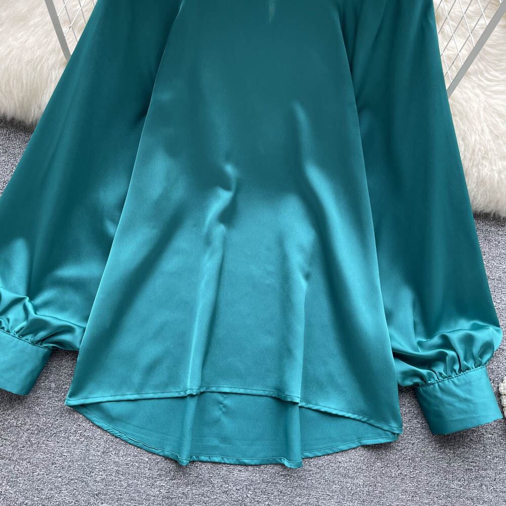 サテンシャツ女性のデザインセンスニッチ 2022 秋の新しいプロの着用軽くて馴染みのあるスタイルのシックなシャツの気質トップ オータム 秋物 lyxaj79675443291