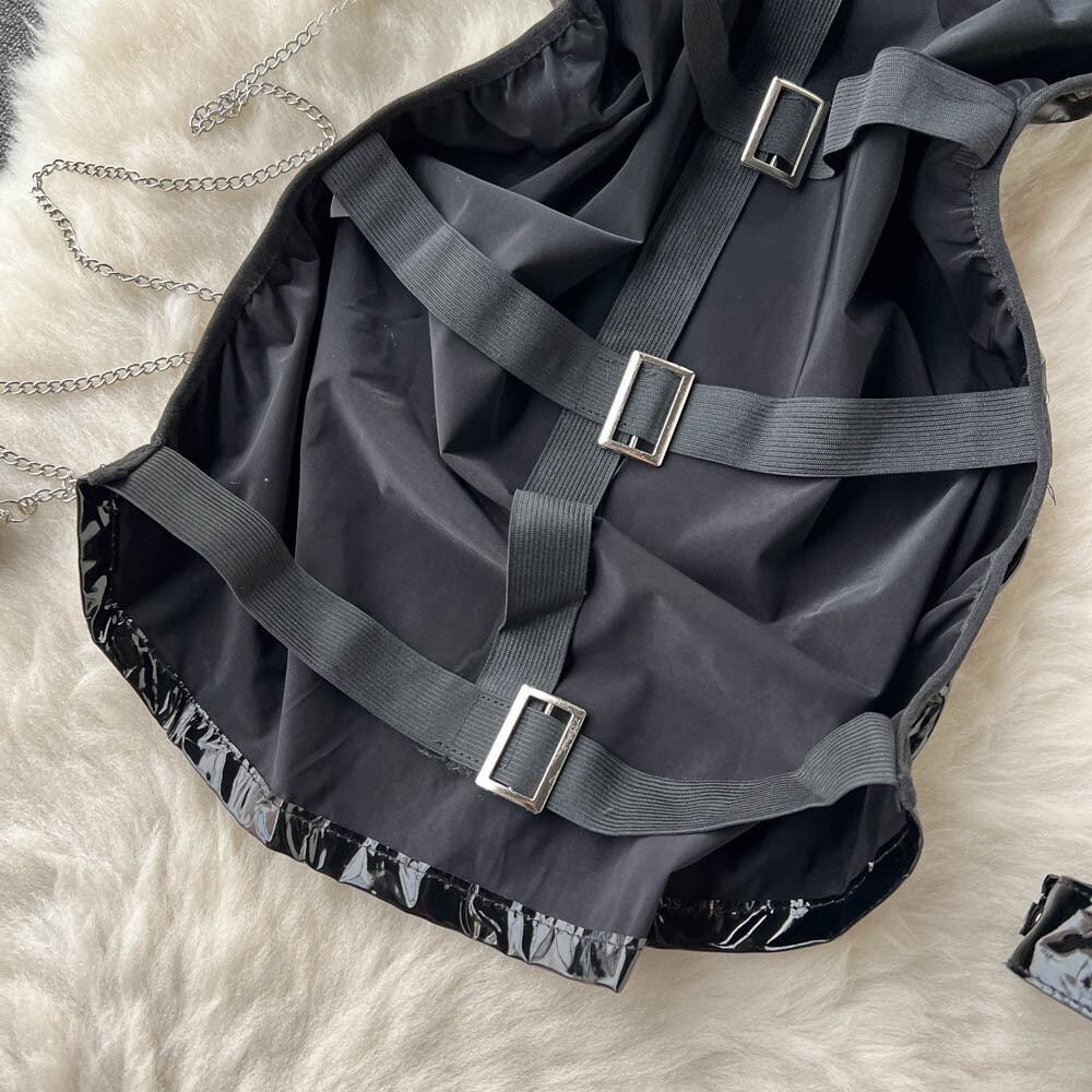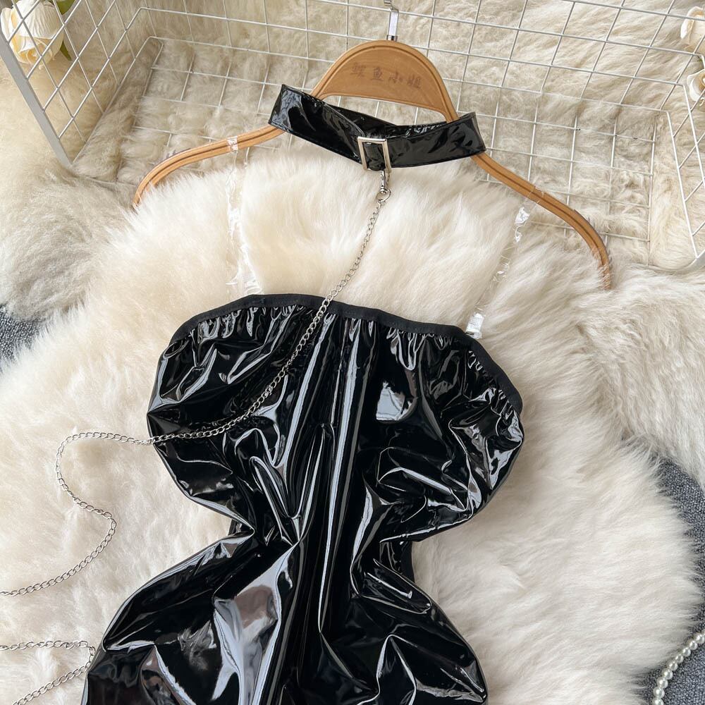 春と秋のセクシーな PU レザー光沢のあるチェーン サスペンダー ハンギング ネック ワンショルダー チューブ トップ ウエスト バッグ ヒップ ドレス スプリング 春物 オータム 秋物 lyxaj95852086231