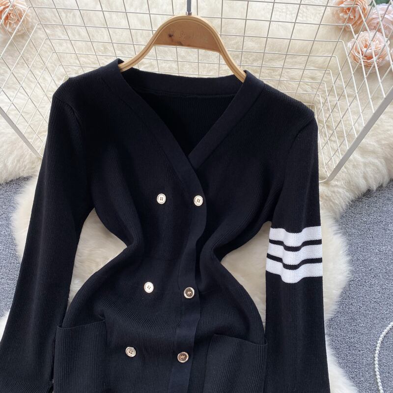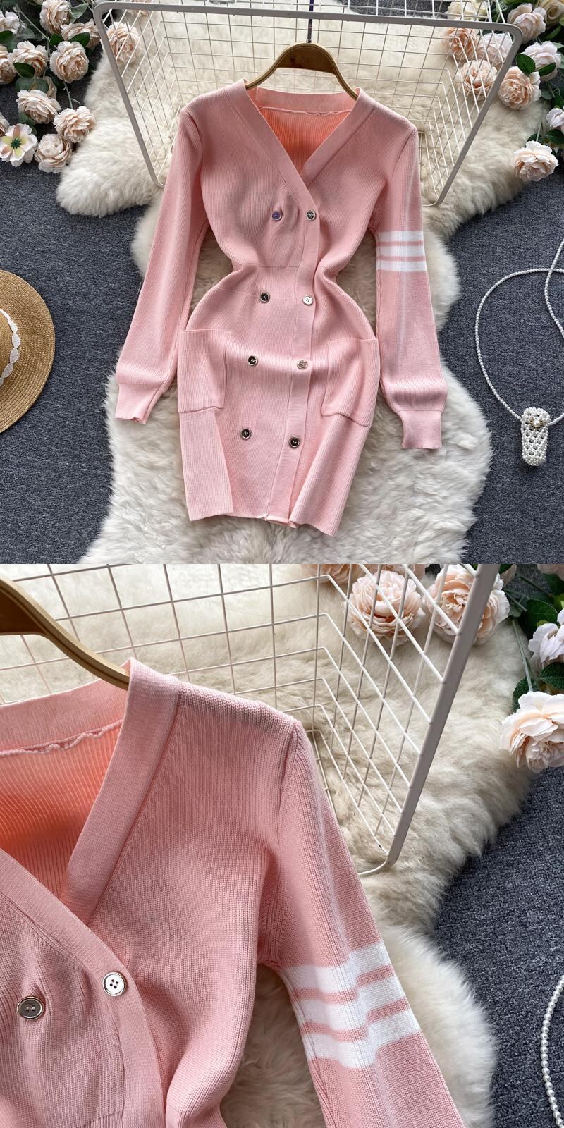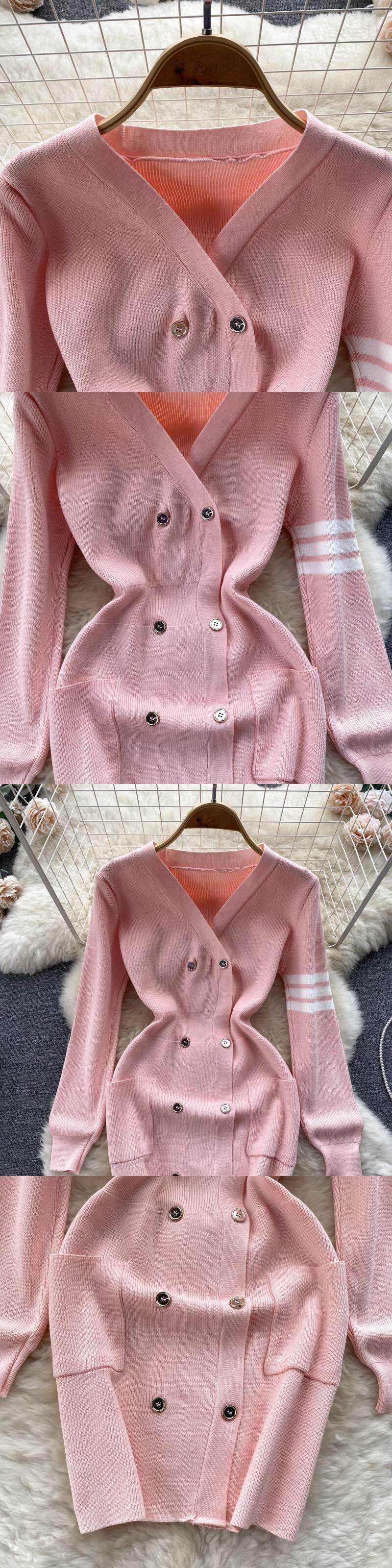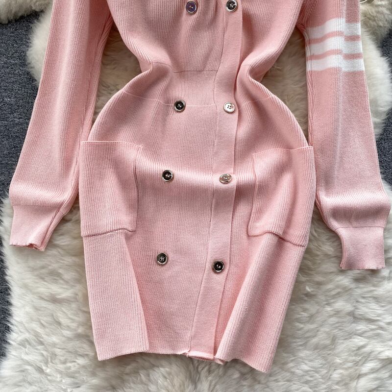 ダブルブレスト ニット ワンピース レディース 秋冬風 小さめ フレグランス カジュアル ファッション ウエスト ウエスト オールマッチ バッグ ヒップ セクシー スカート オータム 秋物 ウィンター 冬物 lyxaj12699819924