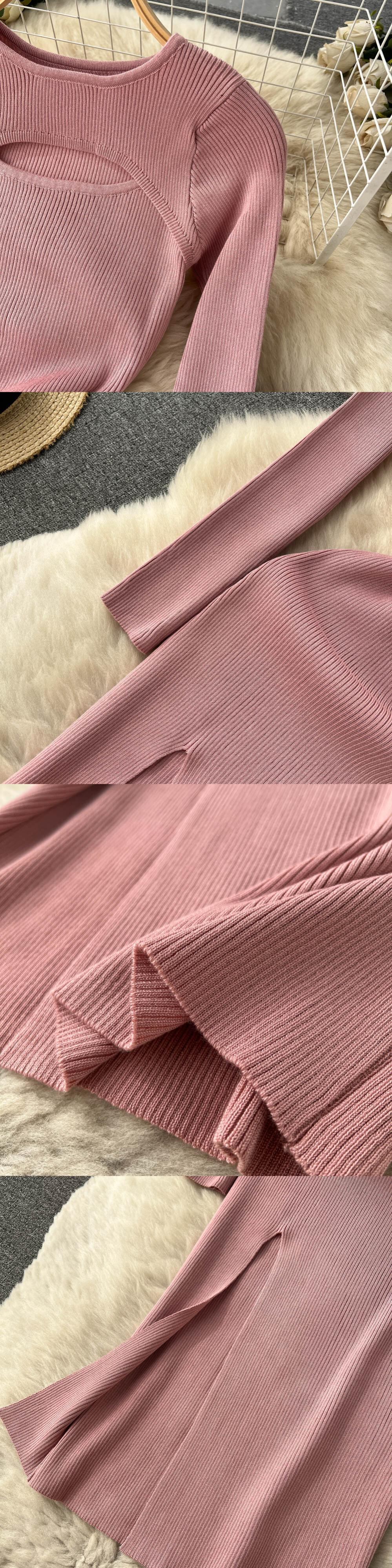 ボトムインナー長袖ニットドレス女性の 2022 秋と冬の新しい中空アウトウエストタイトフィットスリットバッグヒップスカート ロング オータム 秋物 ウィンター 冬物 lyxaj52125486541