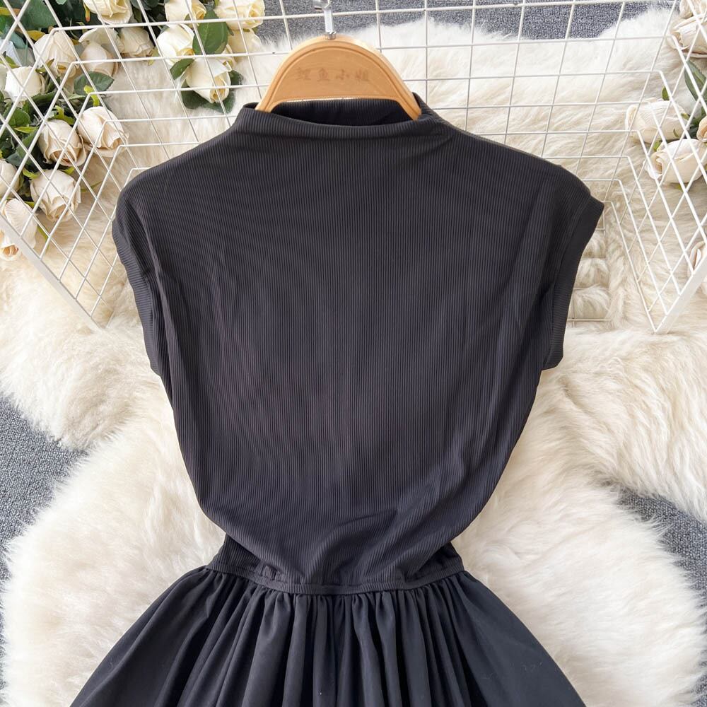 夏のバージョンのハイエンドハーフハイカラーの気質のノースリーブのステッチのドレスの女性のヘップバーンスタイルのフランスの有名人のリトルブラックドレス サマー 夏物 lyxaj48299167938