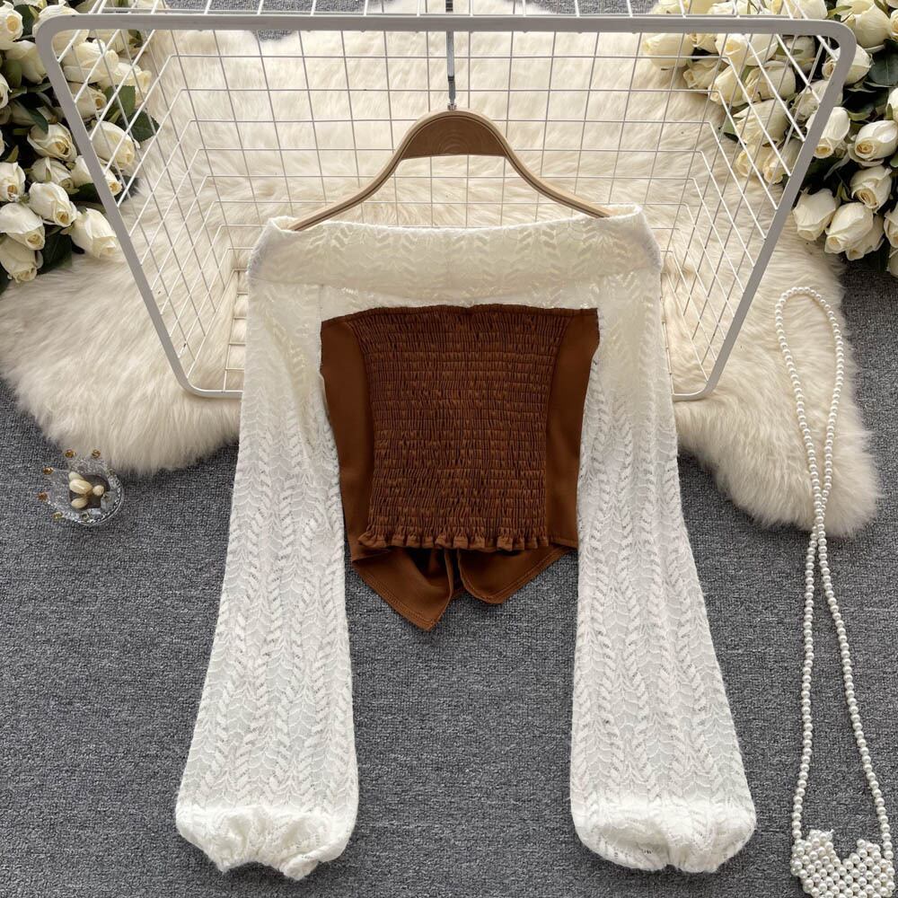 秋の新気質ワンショルダーレーススプライシングデザインセンスフェイクツーピーススリムで薄い不規則なニットセーターの女性 オータム 秋物 lyxaj65730534392