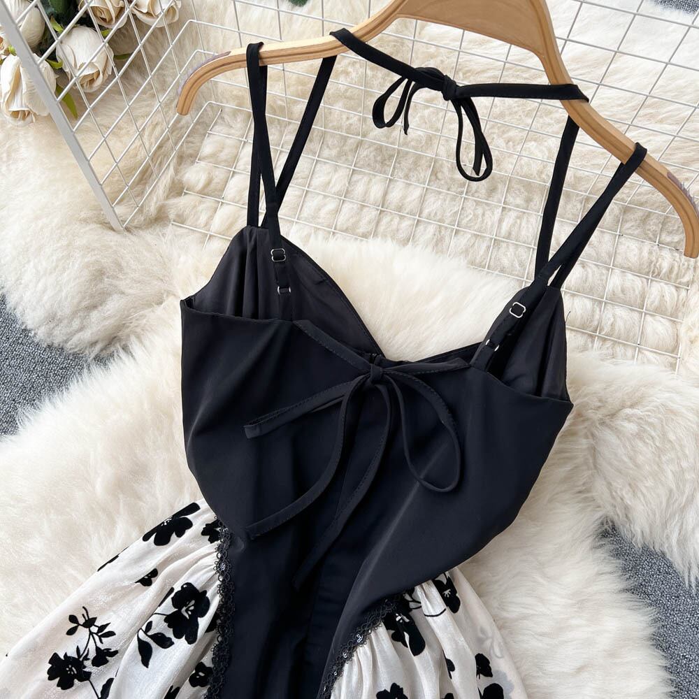 夏の新しいレトロなスプライシング スリング花柄ドレス女性ニッチ ジャカード ミッドレングス ホリデー風妖精スカート サマー 夏物 lyxaj55277974086