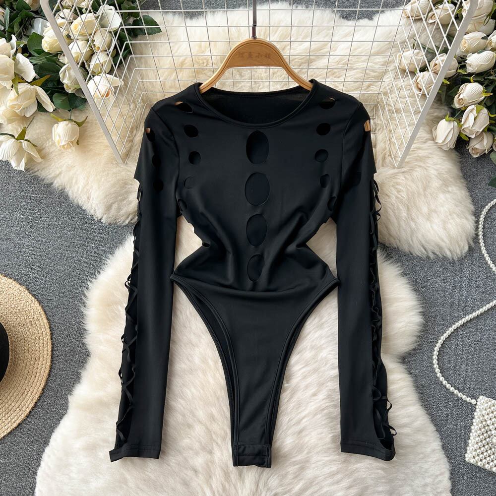 春と秋の新しいデザインの感覚中空穴純粋な欲望イン スタイル サテン セクシーなハイ k ジャンプ スーツ女性の潮 スプリング 春物 オータム 秋物 ピュア lyxaj89447804046