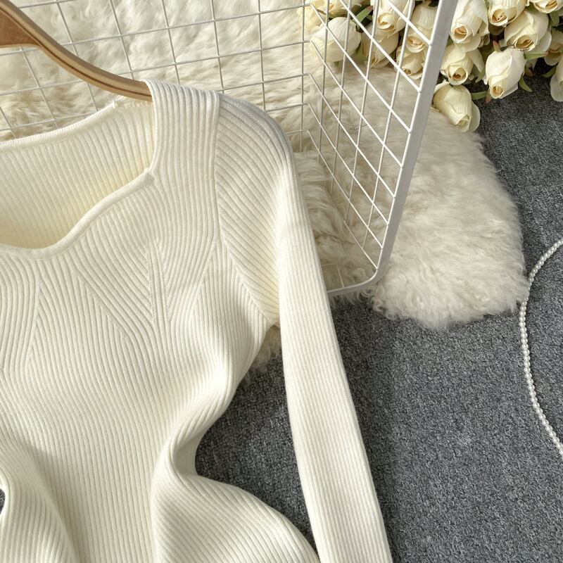 2022 秋と冬の新無地 V ネックプルオーバースリムフィット薄型セータードレス女性のバッグヒップセクシーなニットスカート オータム 秋物 ウィンター 冬物 Vネック ソリッドカラー lyxaj2542363482