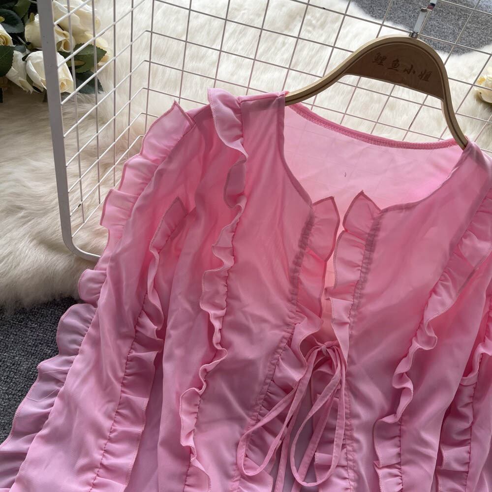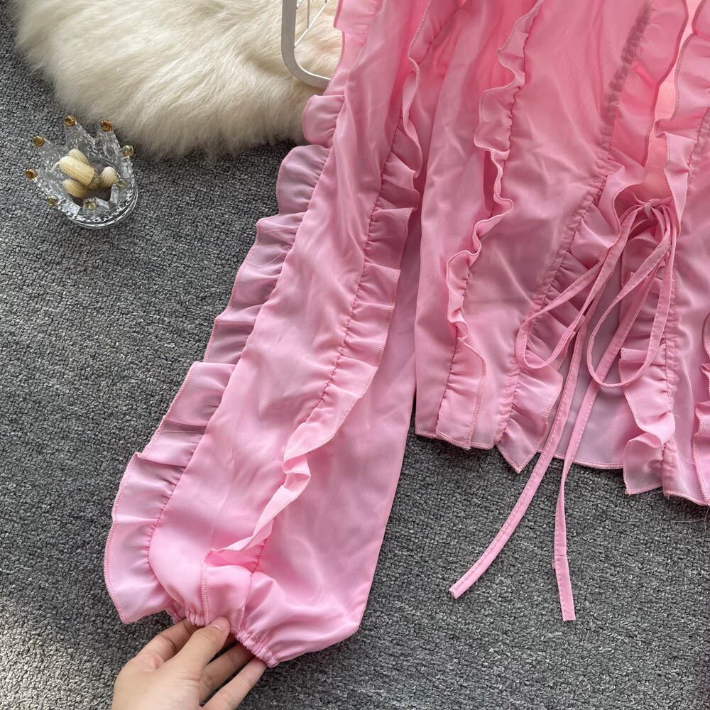 春秋 木製 耳元 巾着 タイ パフスリーブ シャツ レディース 洋風 シック ショート 万能シャツ スプリング 春物 オータム 秋物 lyxaj3882603398
