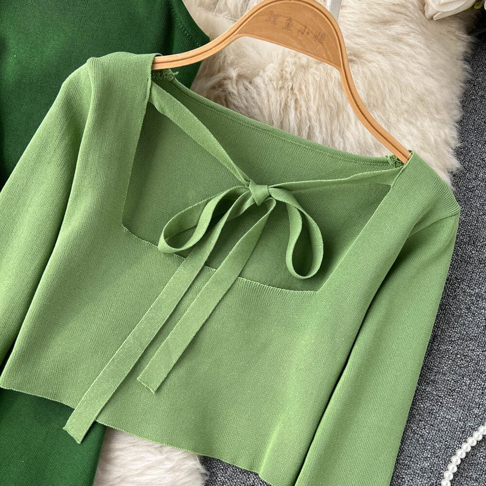 スパイススタイル秋服 2022 新しい女性のスーツ長袖ショート Tシャツウエストスリムサスペンダードレストレンディ ロング オータム 秋物 lyxaj76004387273