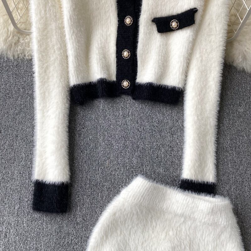 秋と冬の色のコントラストステッチ豪華なスーツの女性の短いシングルブレスト長袖ショールコート + ヒップスカート 2 点セット ショート ロング オータム 秋物 ウィンター 冬物 lyxaj92146996188