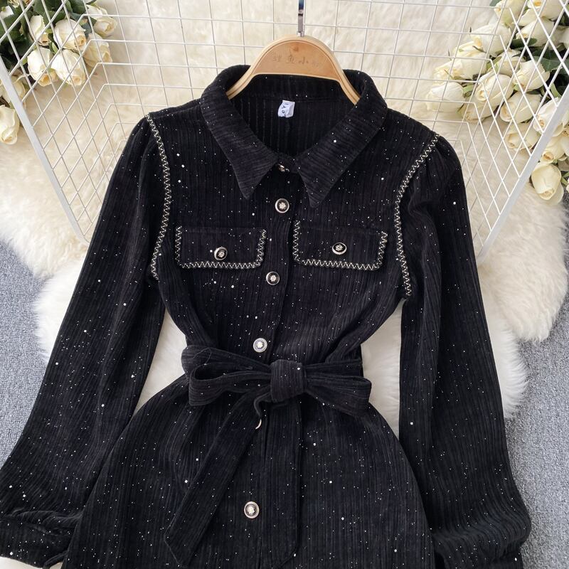 2022年秋冬新作ライトラグジュアリーレトロドレスハイエンドセンスフレンチヘップバーンスタイルリトルブラックスカートウエストAラインスカート オータム 秋物 ウィンター 冬物 lyxaj67155986672