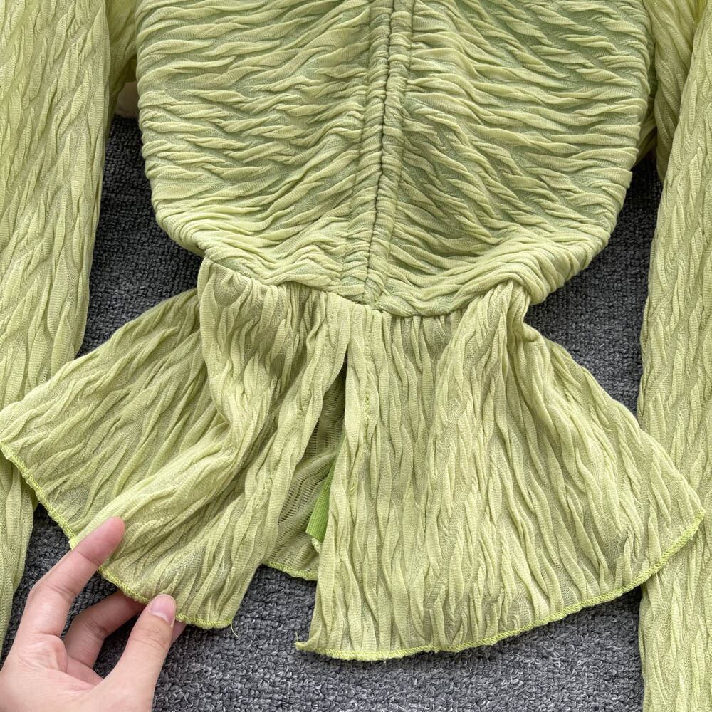 2022秋の新デザインセンススクエアカラー中空タイベルトハイエンドフックフラワーウエストフリルショートトップトレンディ オータム 秋物 ハーネス フラワーデザイン スクウェア lyxaj5021821880