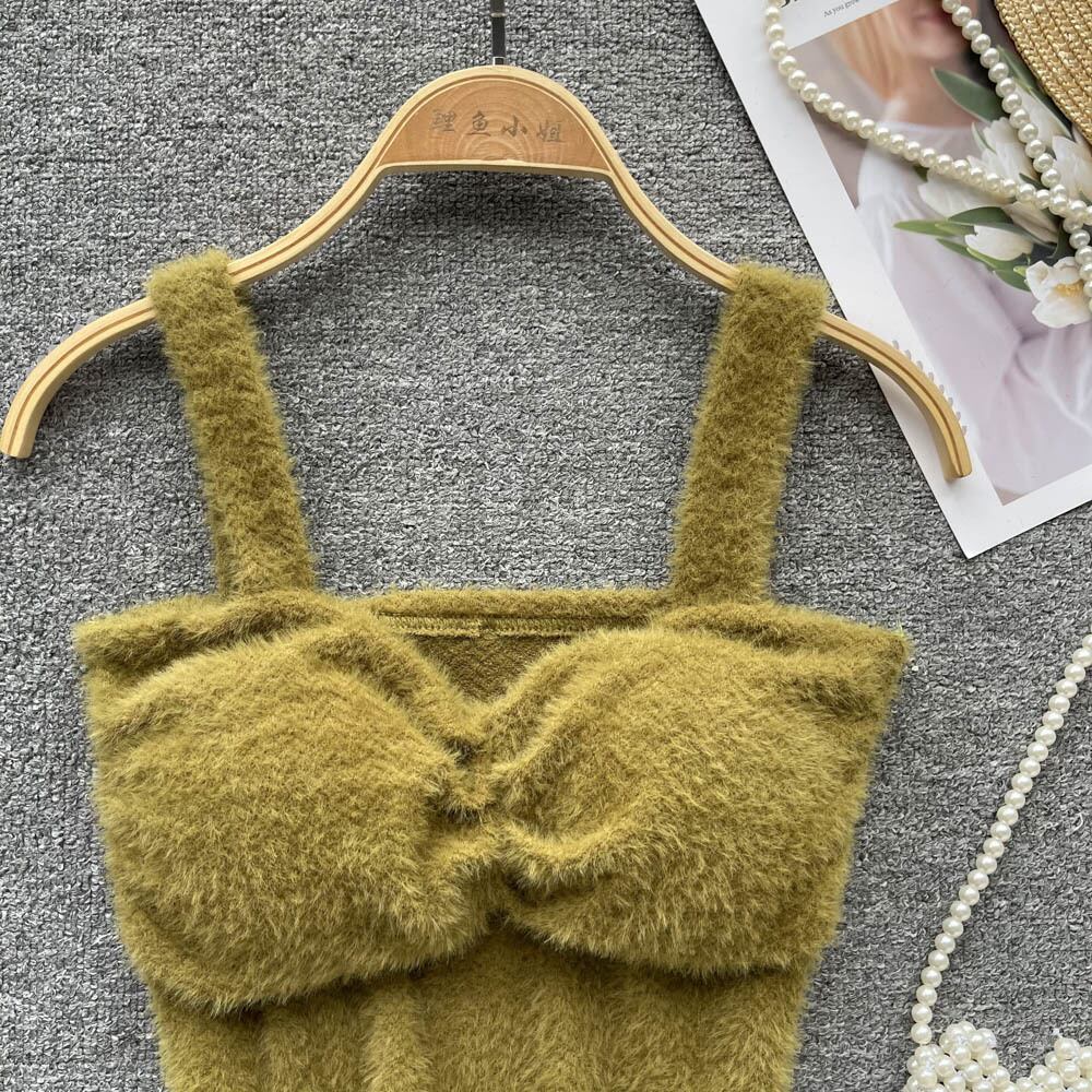 秋冬新作 フラシ天 チェストパッド付き あったかサスペンダー ショートベスト トップス フェミニン チューブトップ インナーブラ オータム 秋物 ウィンター 冬物 lyxaj43378495787